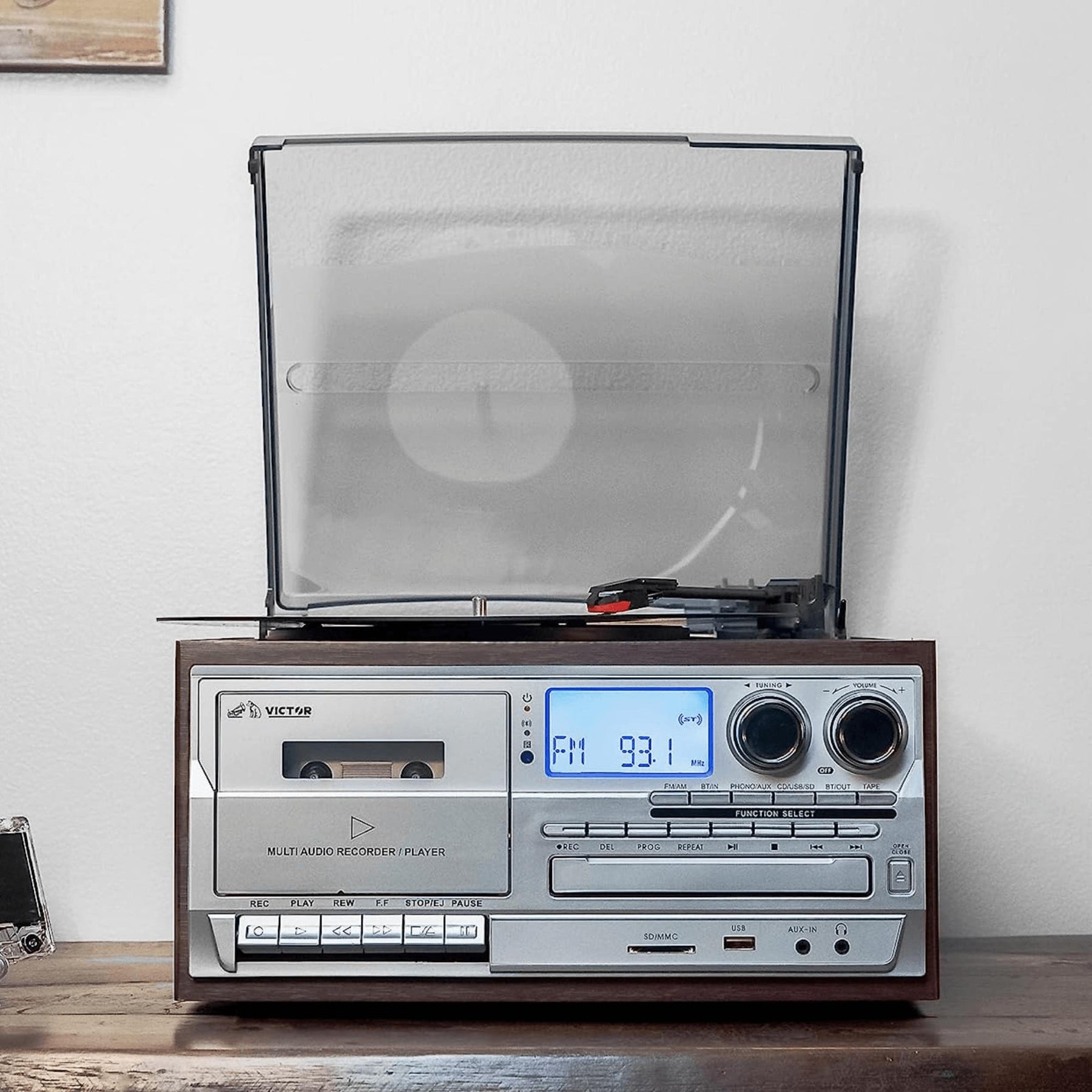 Meet the Victor Cosmopolitan 8-in-1 Turntable Music Center — a retro-inspired all-in-one that blends vinyl charm with modern connectivity. It’s perfect for music lovers who want classic style without sacrificing convenience.