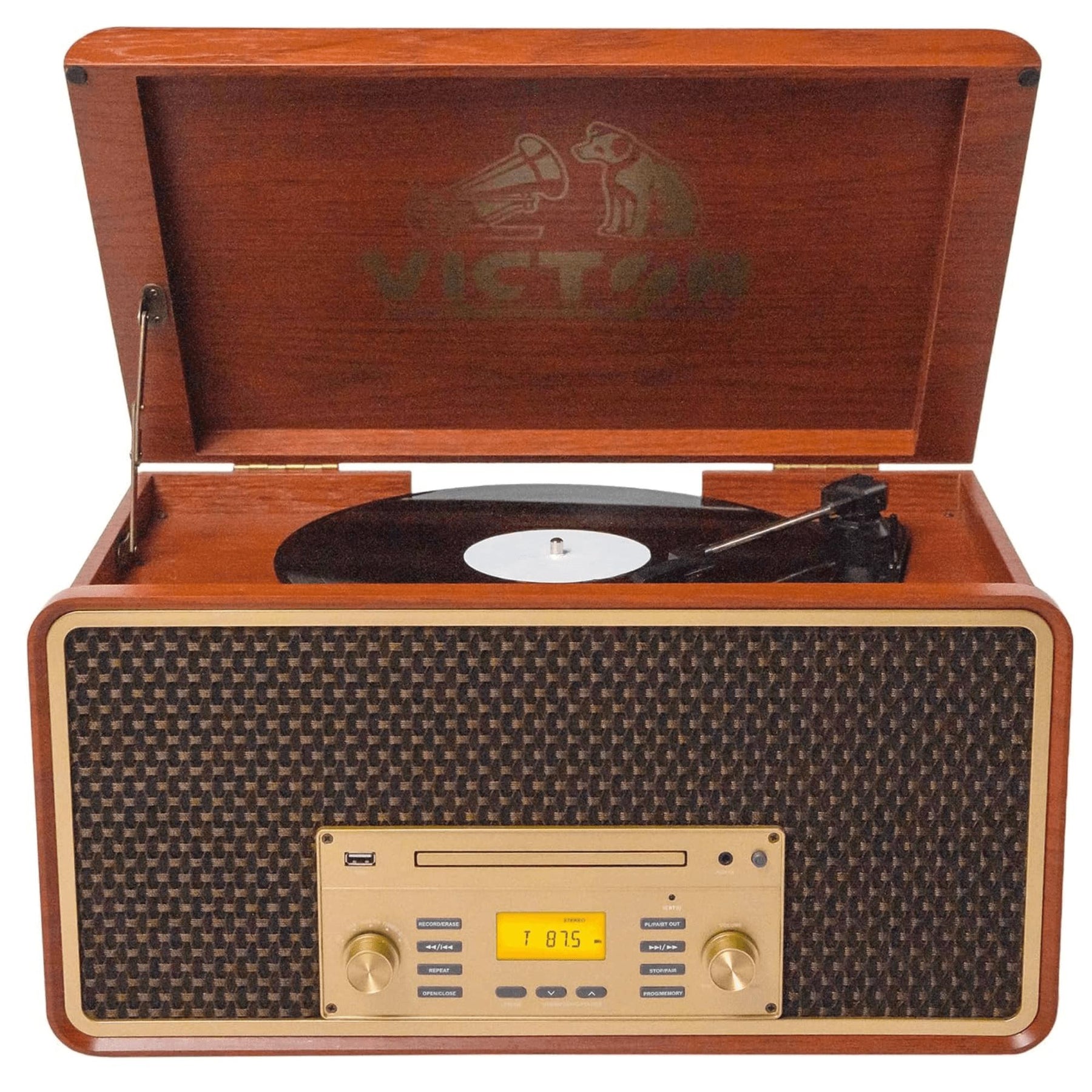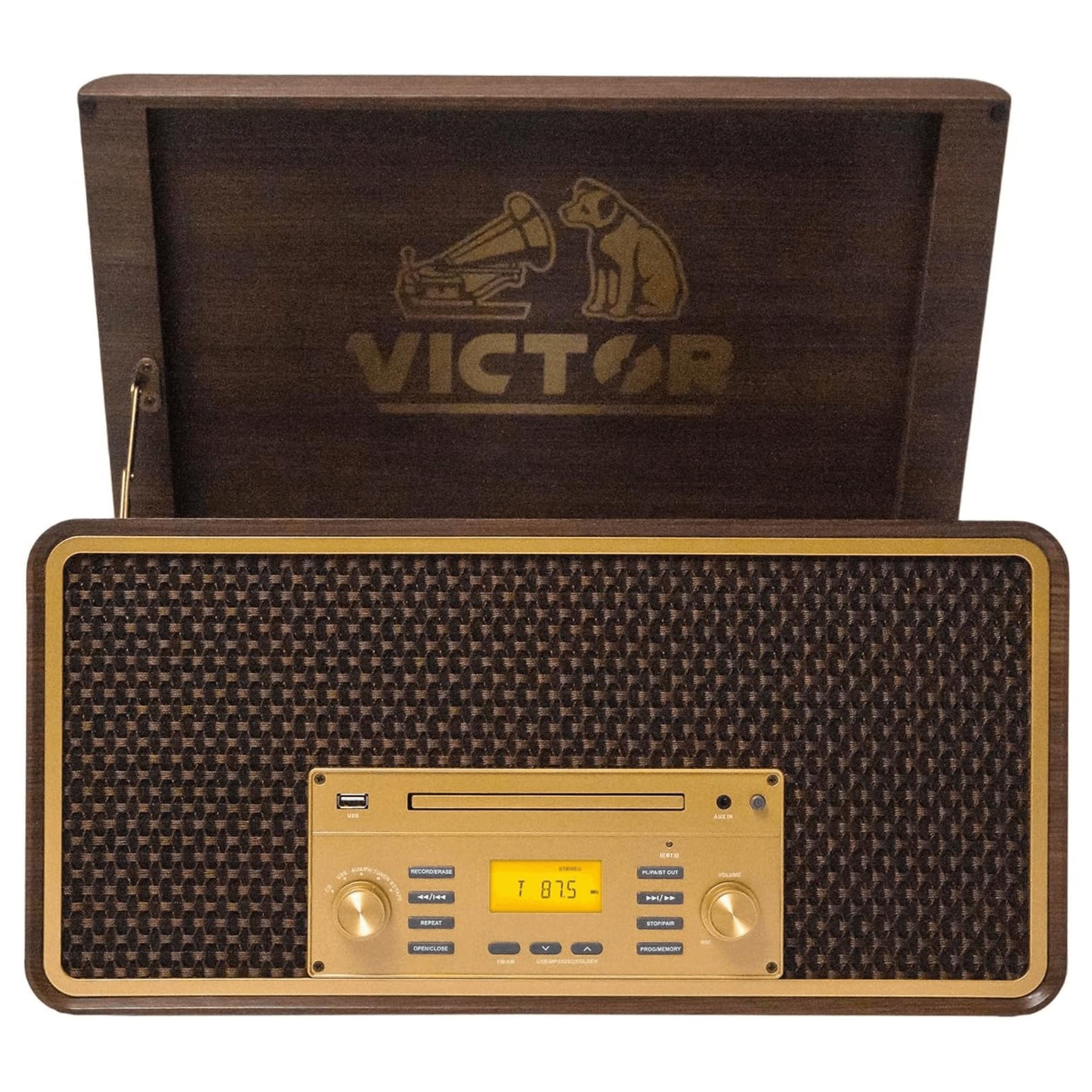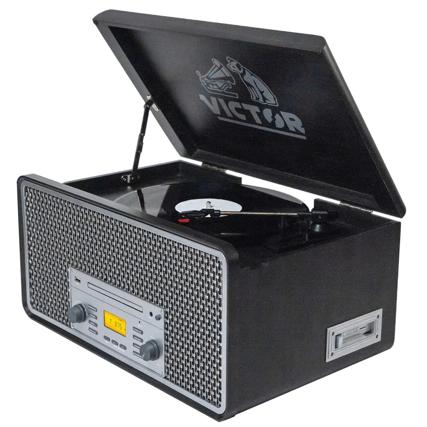 Victor Monument 8-in-1 Wood Music Center with 3-Speed Turntable & Dual Bluetooth