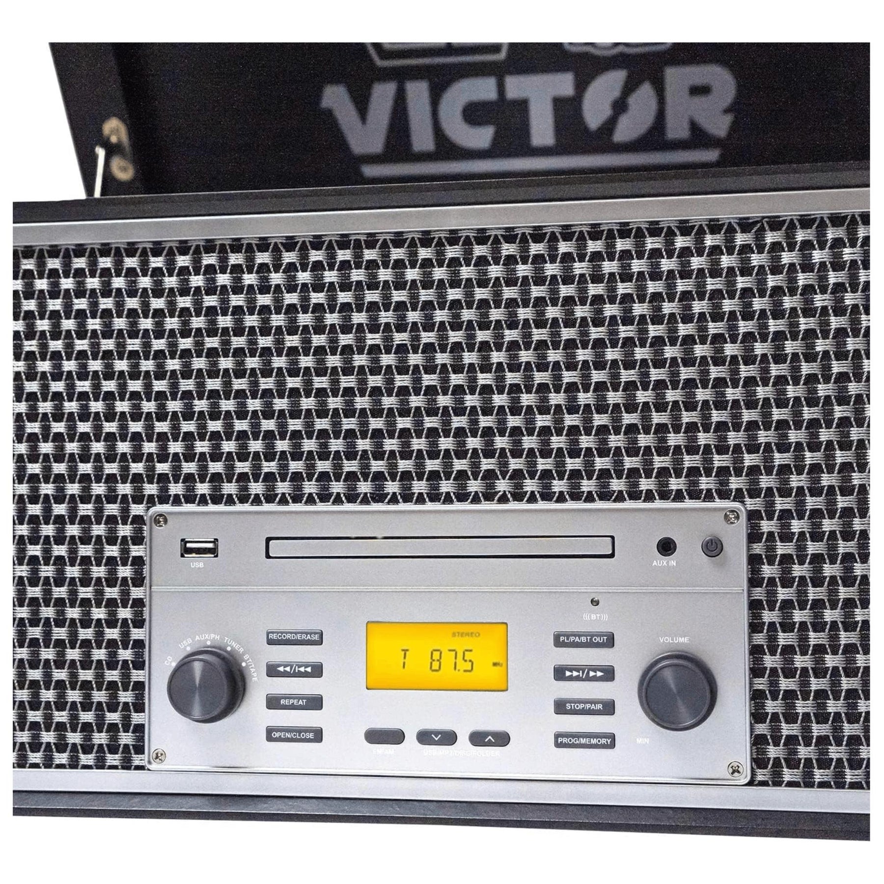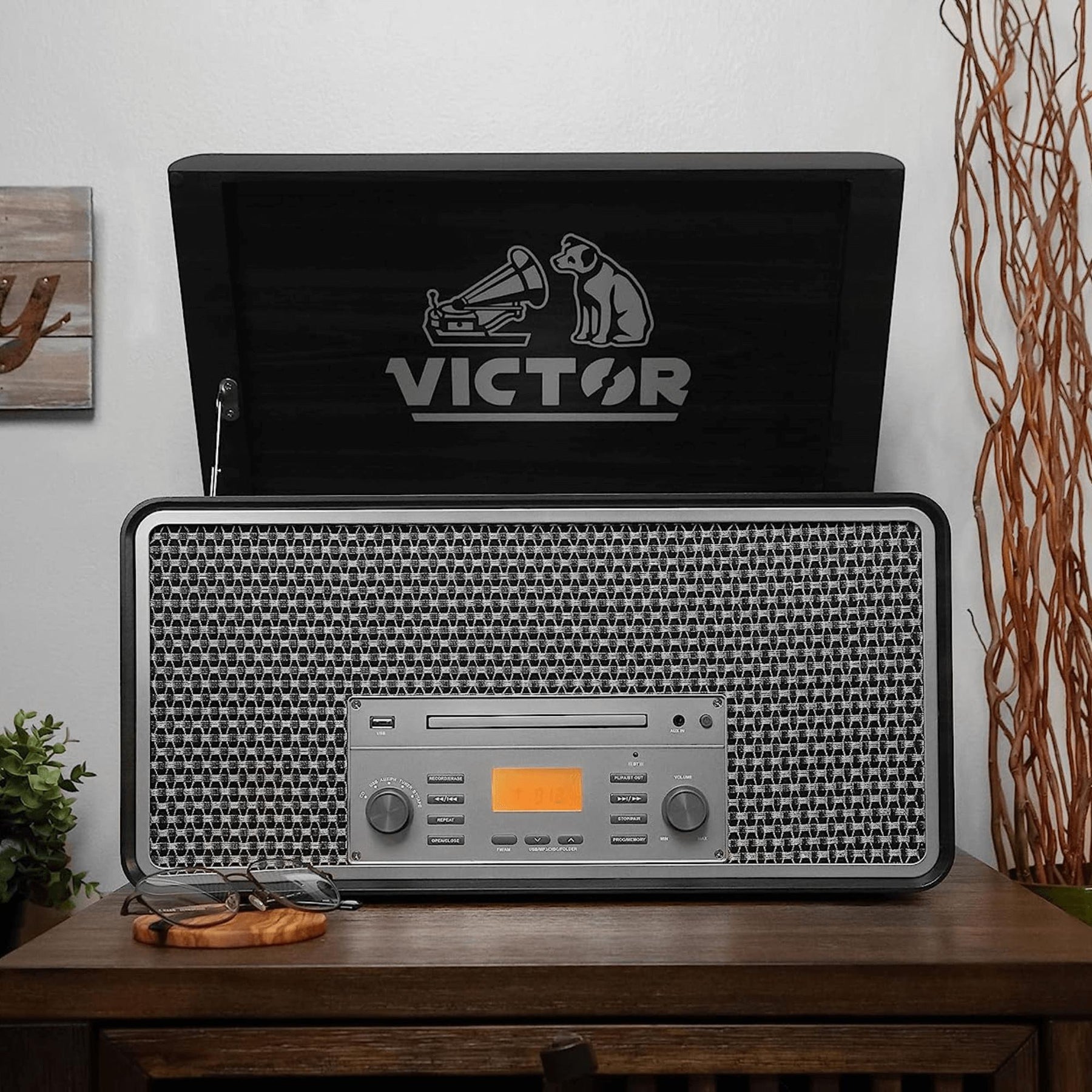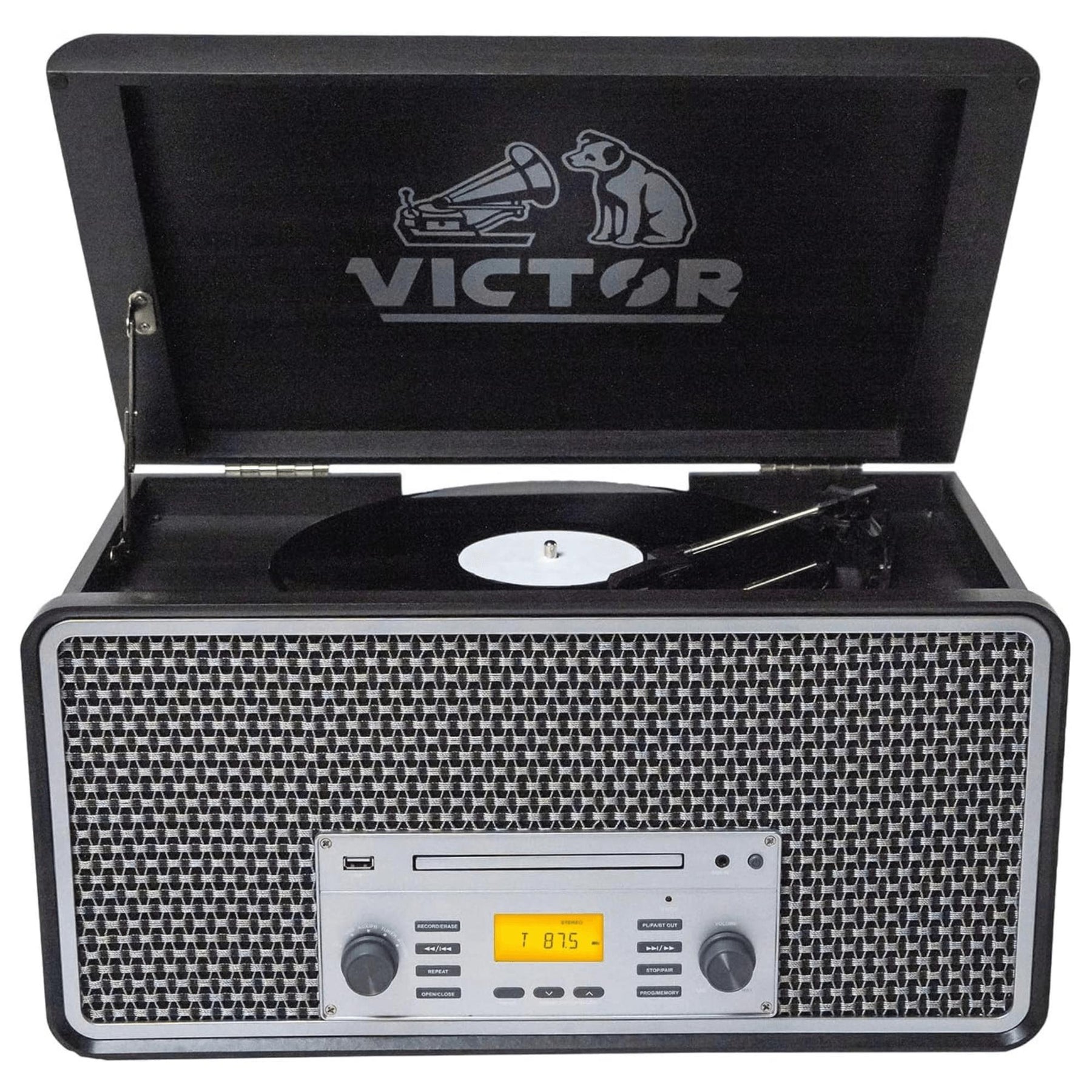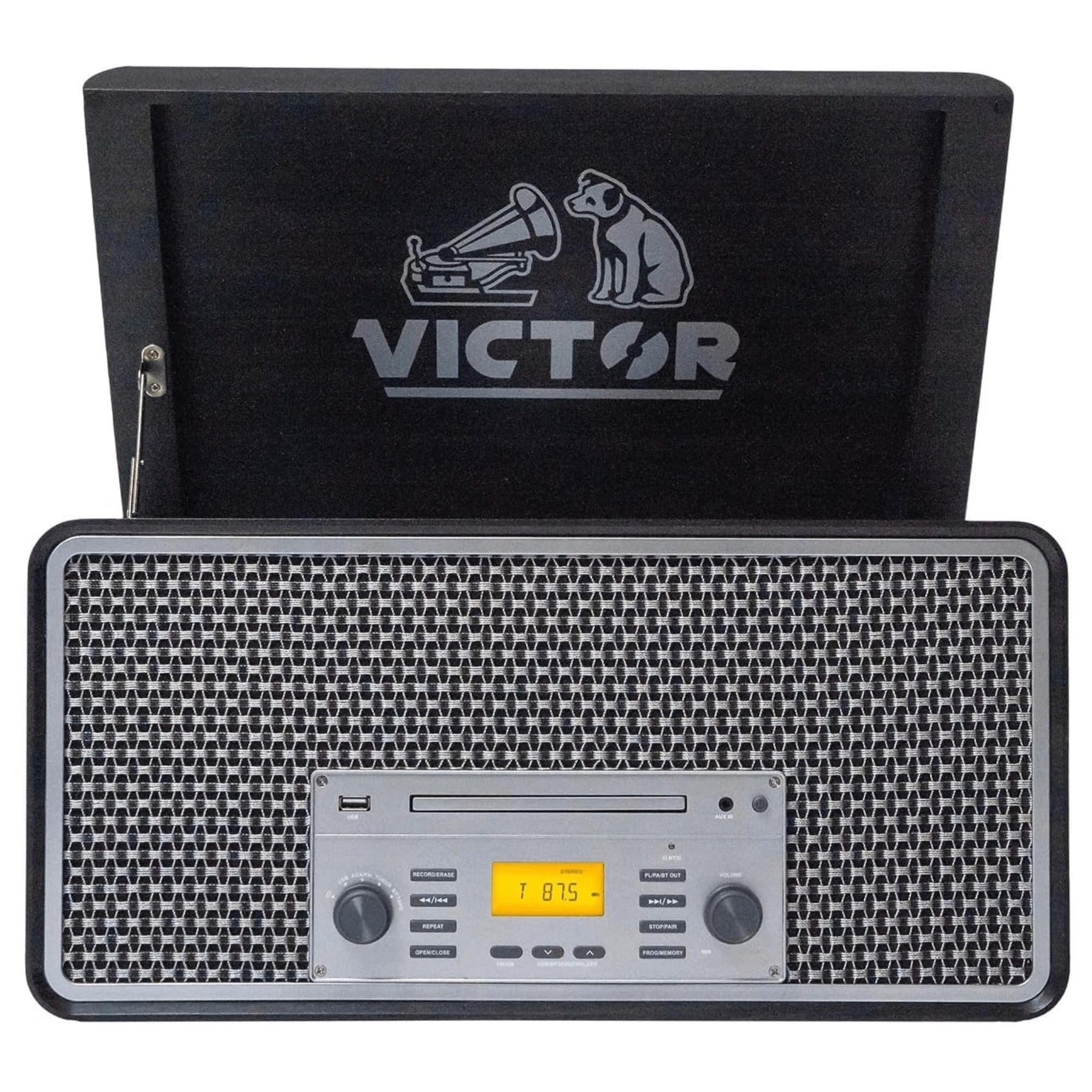 Victor Monument 8-in-1 Wood Music Center with 3-Speed Turntable & Dual Bluetooth
