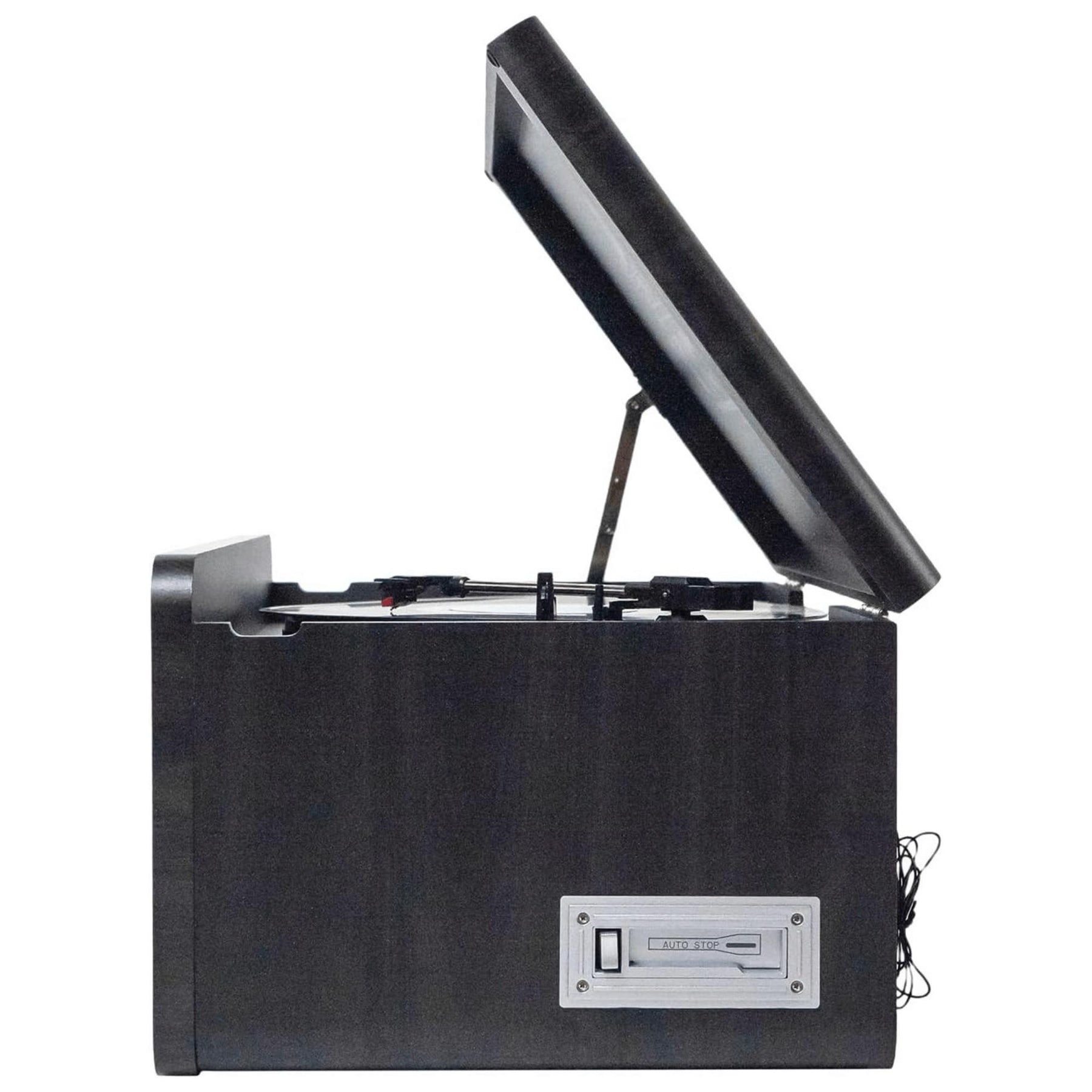 • Built-in 3-Speed Turntable with Auto Return plays 33 1/3, 45, and 78 rpm records—perfect for toying with vintage classics or discovering hidden gems.