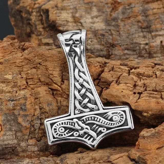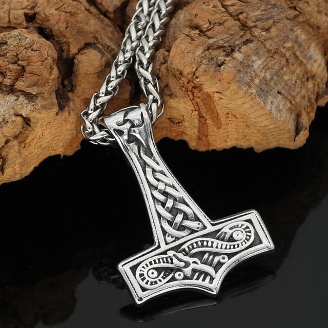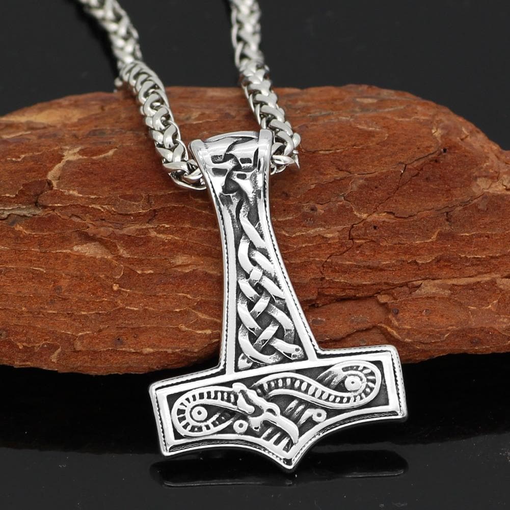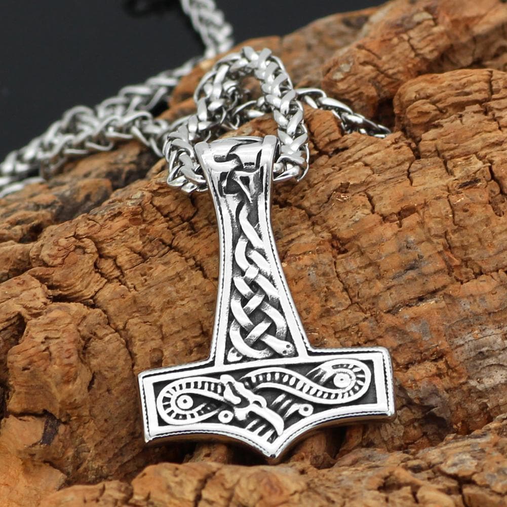 Viking Jormungand Stainless Steel Mjolnir Necklace