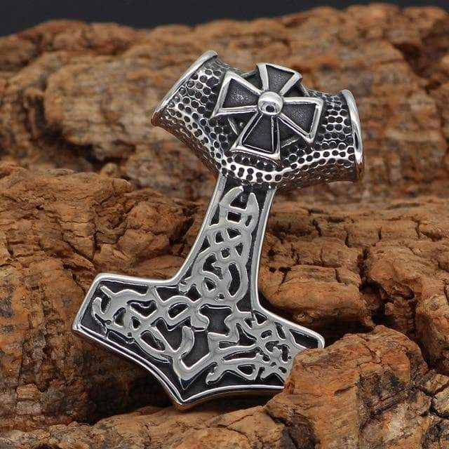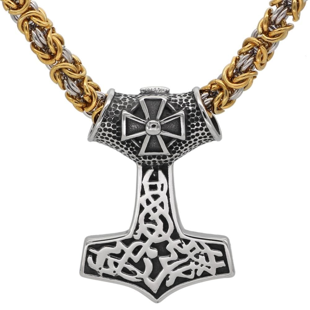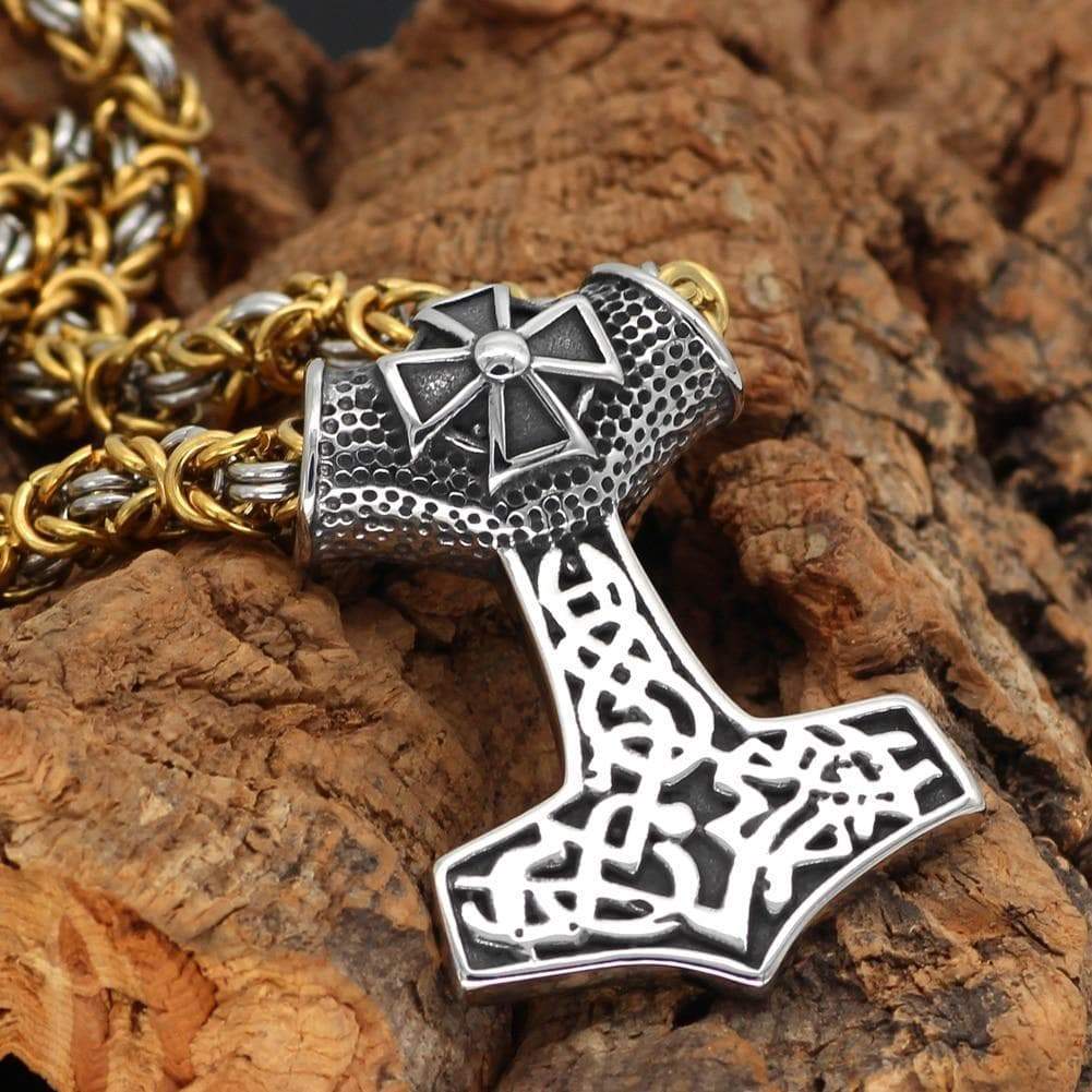 Viking Thors Hammer Celtic Cross Stainless Steel Necklace