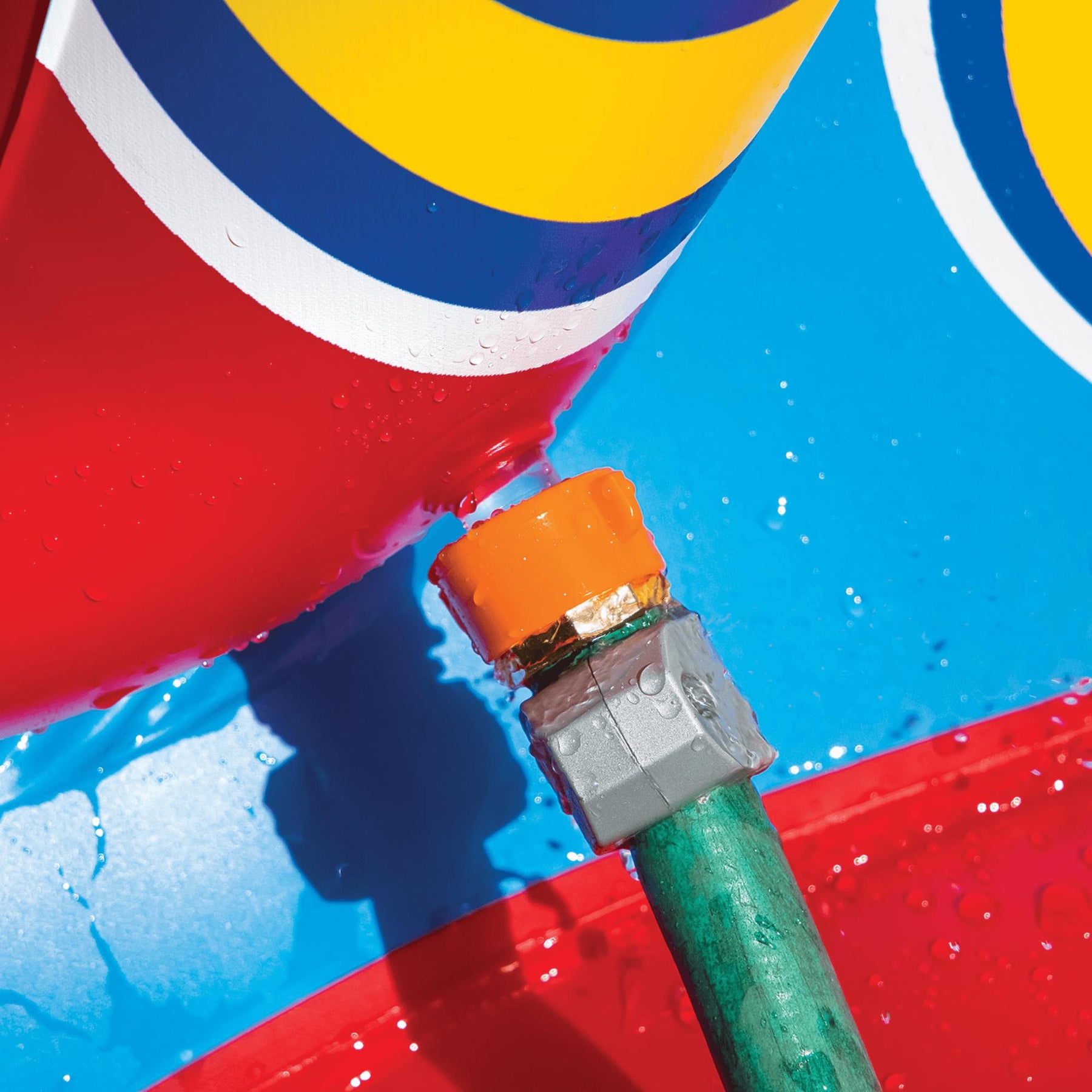 • Built-in soaker sprinkler creates a wet fast sliding surface that connects easily to any standard garden hose.