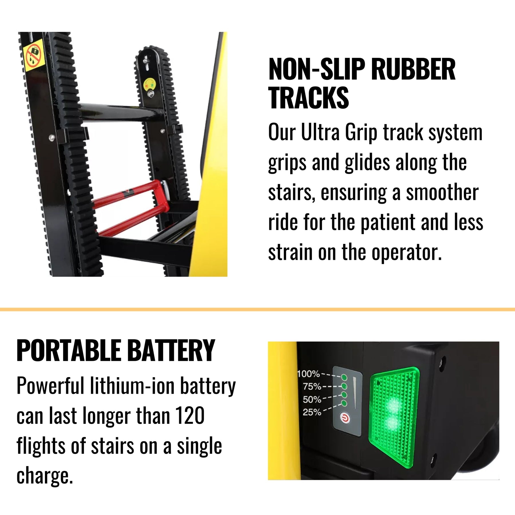 • Traction: rubber tracks provide excellent traction on stairs, making movement smooth and secure.