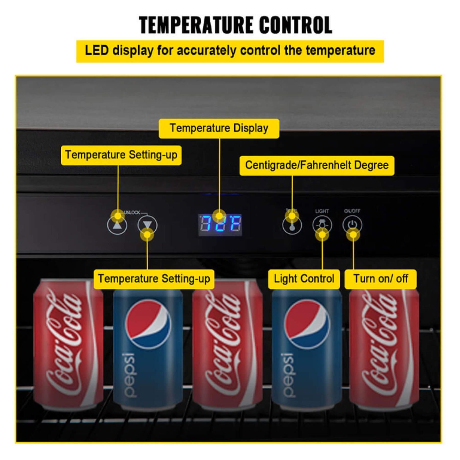 • Precise temperature control with a digital touch blue LED display that allows you to set the temperature anywhere between 32°F and 65°F.