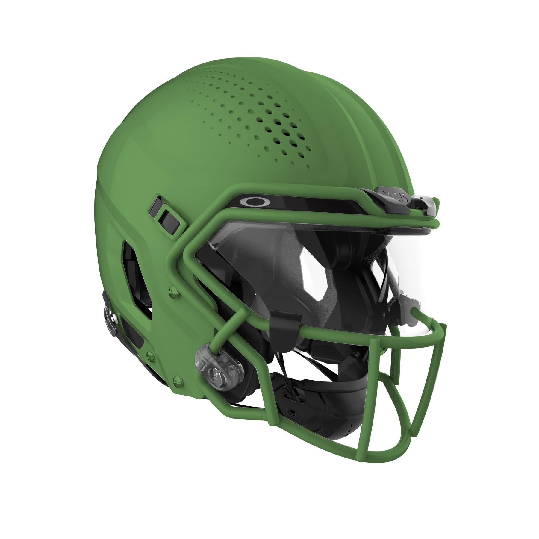 Equipped with a titanium facemask; 30% lighter than steel and paired with an Oakley Edge clear visor (Oakley Eye Shield) for crisp visibility, all finished in Matte Colors for a sleek, modern look.