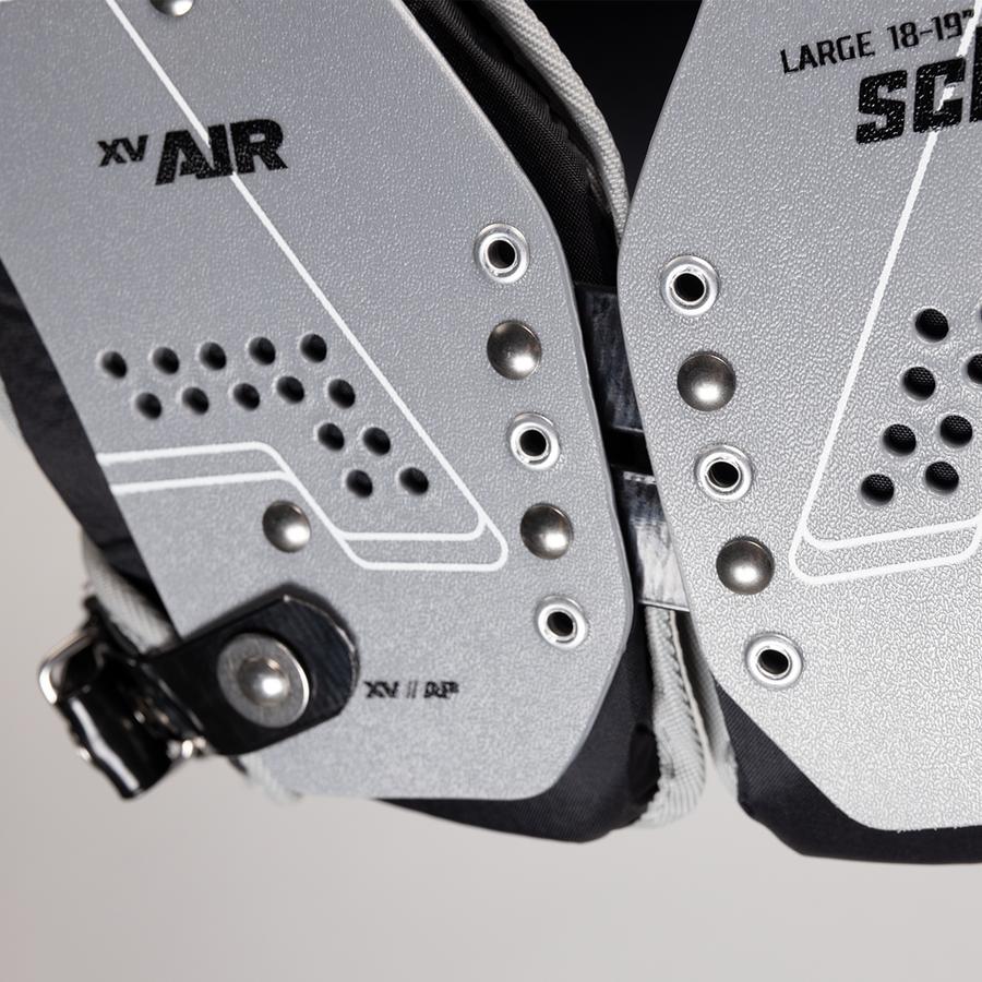Meet the XV All-Purpose Shoulder Pads - AIR from Schutt: redesigned for a modern fit, built to protect a wide range of positions, and tuned for comfort with air cushioning you can customize. It’s the reliable choice for players who want serious protection without slowing down the game.