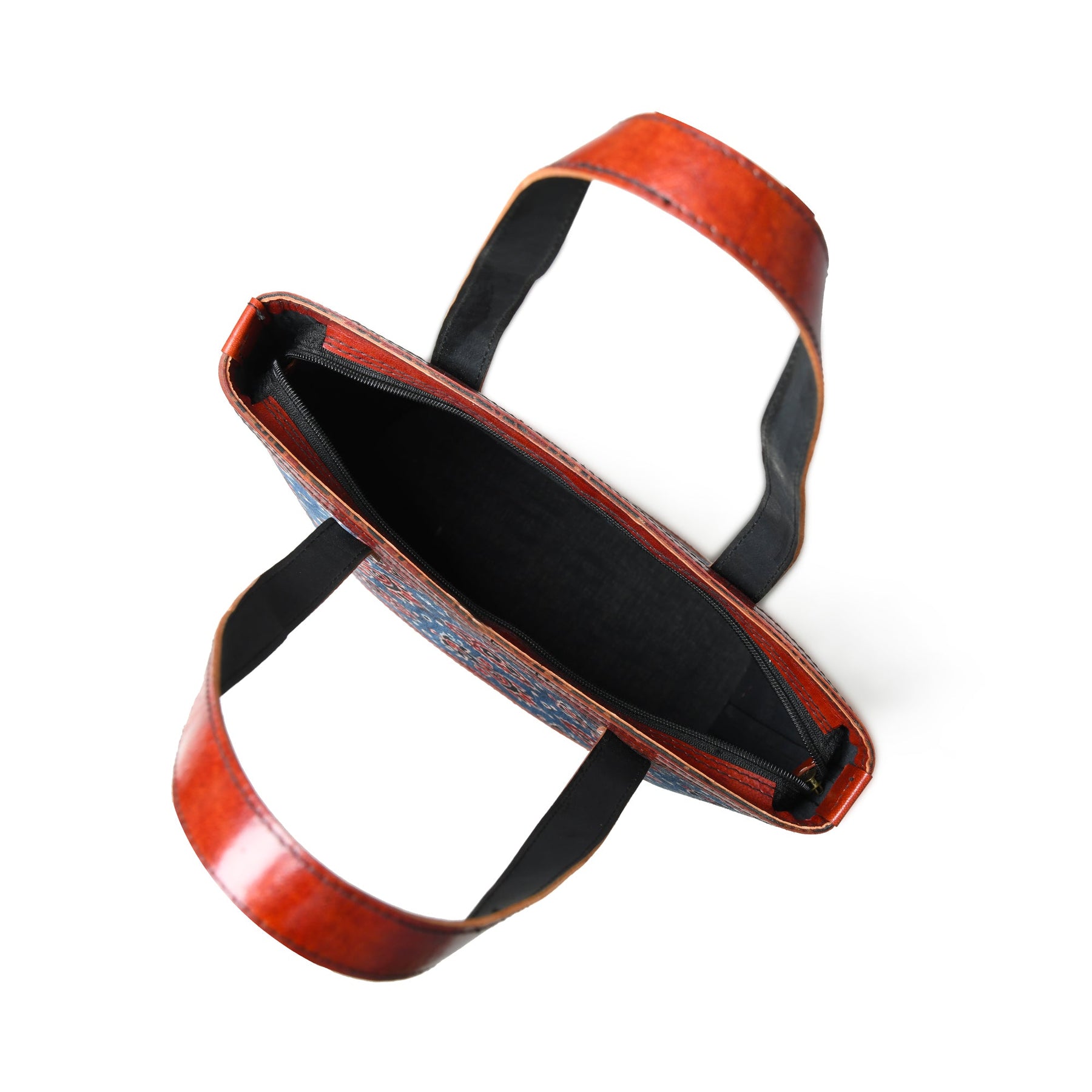 Neela Ajrakh Leather Tote Bag