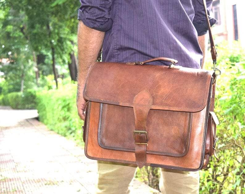 The Magnanimous Messenger is a vintage-inspired leather bag built for hassle-free portability of a laptop and documents to the office. Available in an 18-inch size, it’s designed to fit large laptops without sacrificing timeless style.