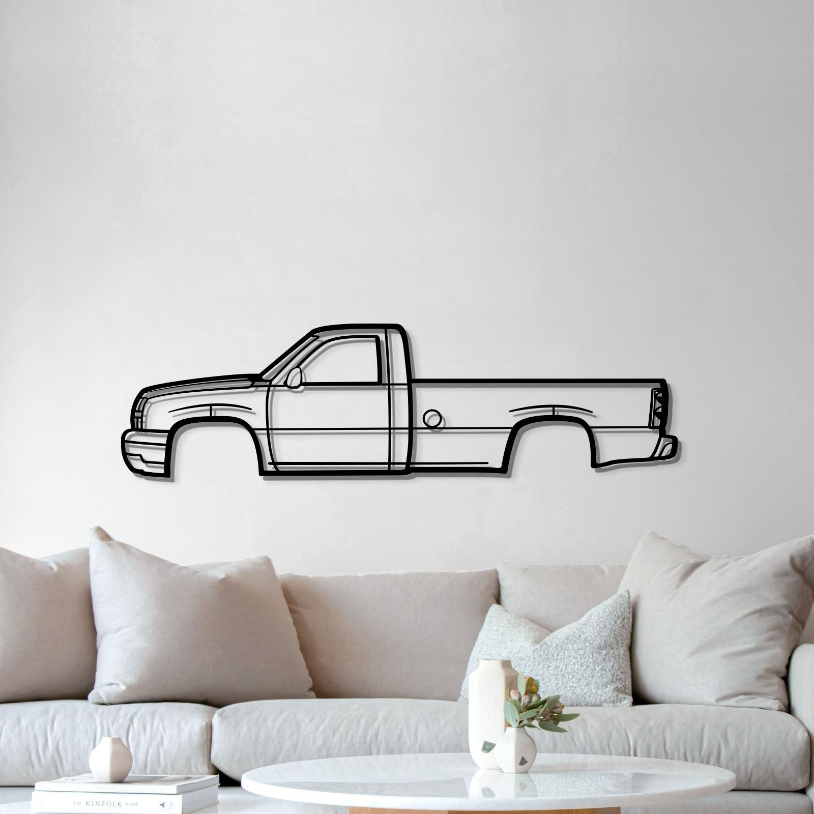 The 2005 Silverado Metal Car Wall Art (MT0324) is a striking tribute to a classic pickup, designed for car lovers who want their space to rev up a notch. It’s the kind of decor that speaks petrolhead with a wink, whether you’re in the living room, garage, or hallway.