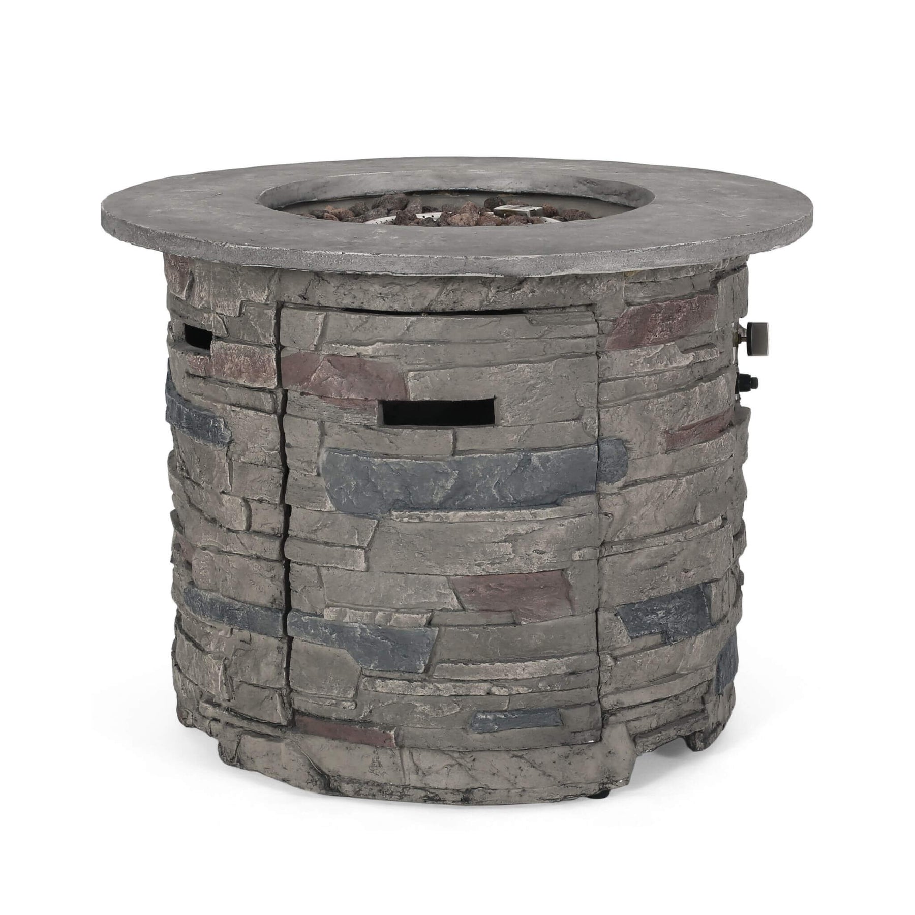 32" Transitional Outdoor Concrete Round Propane Fire Pit Table, Gray (SAK48268)