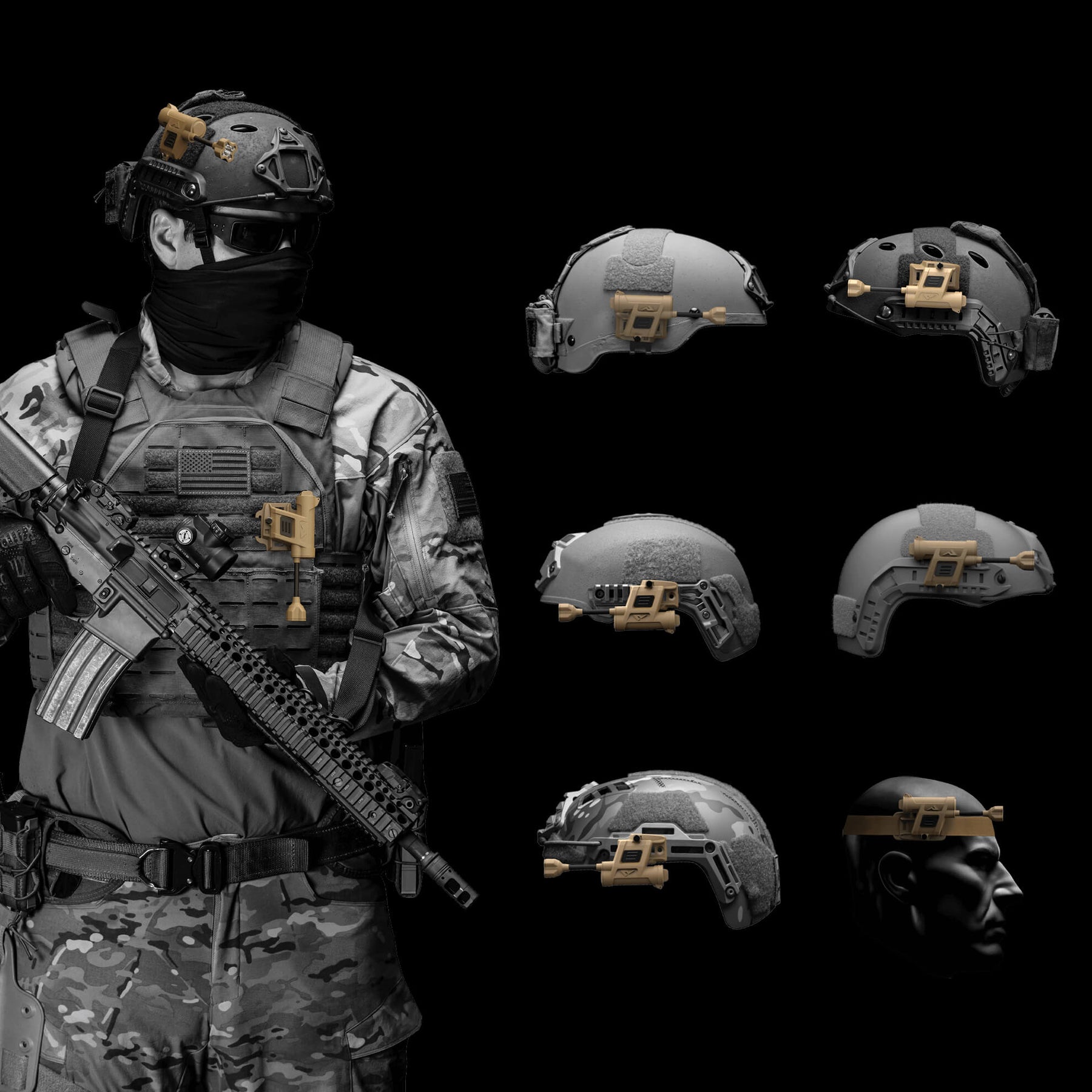 • Versatile mounting: Helmet Side Mount ARCs EXFIL Rail MLOK® MOLLE/PALS Picatinny Above the Rail Headstrap Hook & Loop