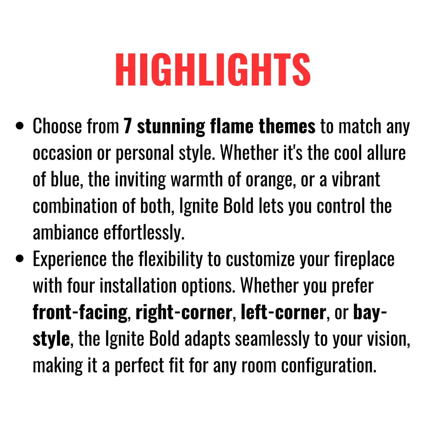 Whether you're entertaining or unwinding after a long day, Ignite Bold delivers warmth, style, and a touch of drama—without ever lighting a log.