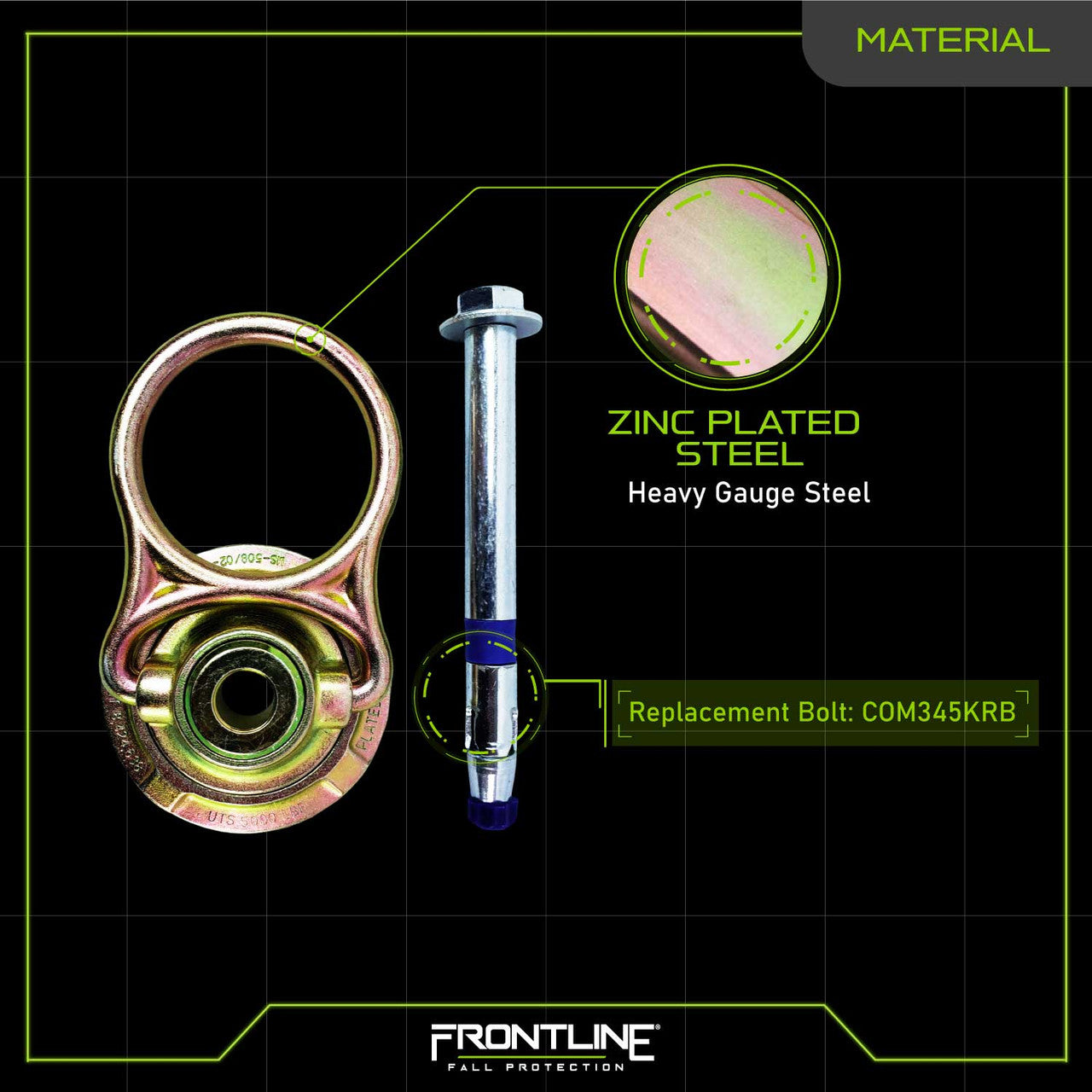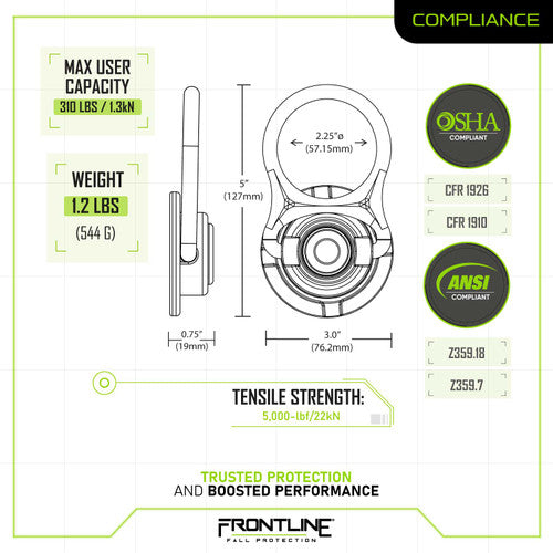 Meet the Frontline COM345K MEGA Swivel 5k Concrete Anchor — a high-strength, reusable anchor built for fall protection, rescue, lifting, and tie-backs in concrete. If your job requires serious grip with a touch of swagger, this swivel anchor has you covered.