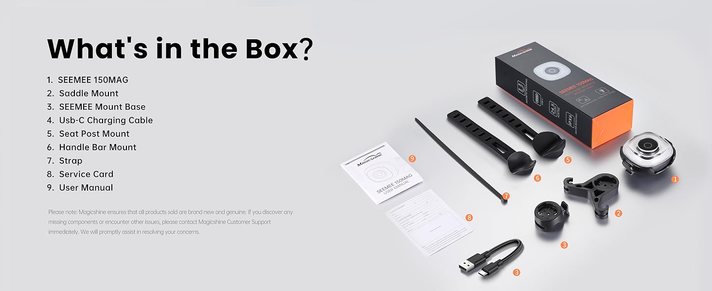 Designed to be as dependable as your saddle, the SEEMEE 150 MAG blends practical features with smart tech so you can ride with confidence in any conditions. Visibility, ease of use, and rugged build—all without the drama of fiddling with cables in the rain.
