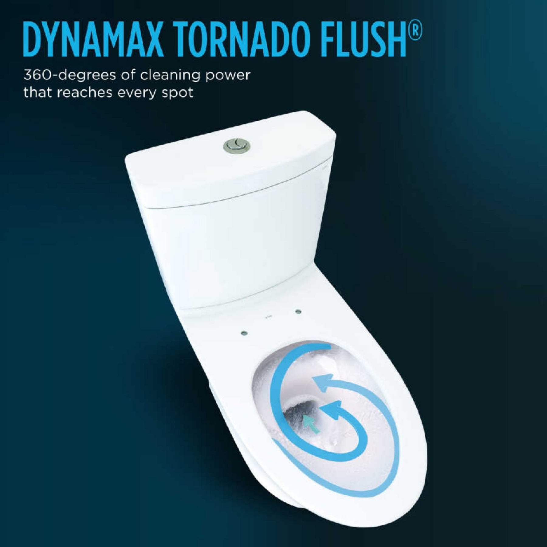 • Dual flush system: 0.9 GPF rinse for water conservation or 1.28 GPF for more powerful flushes.
