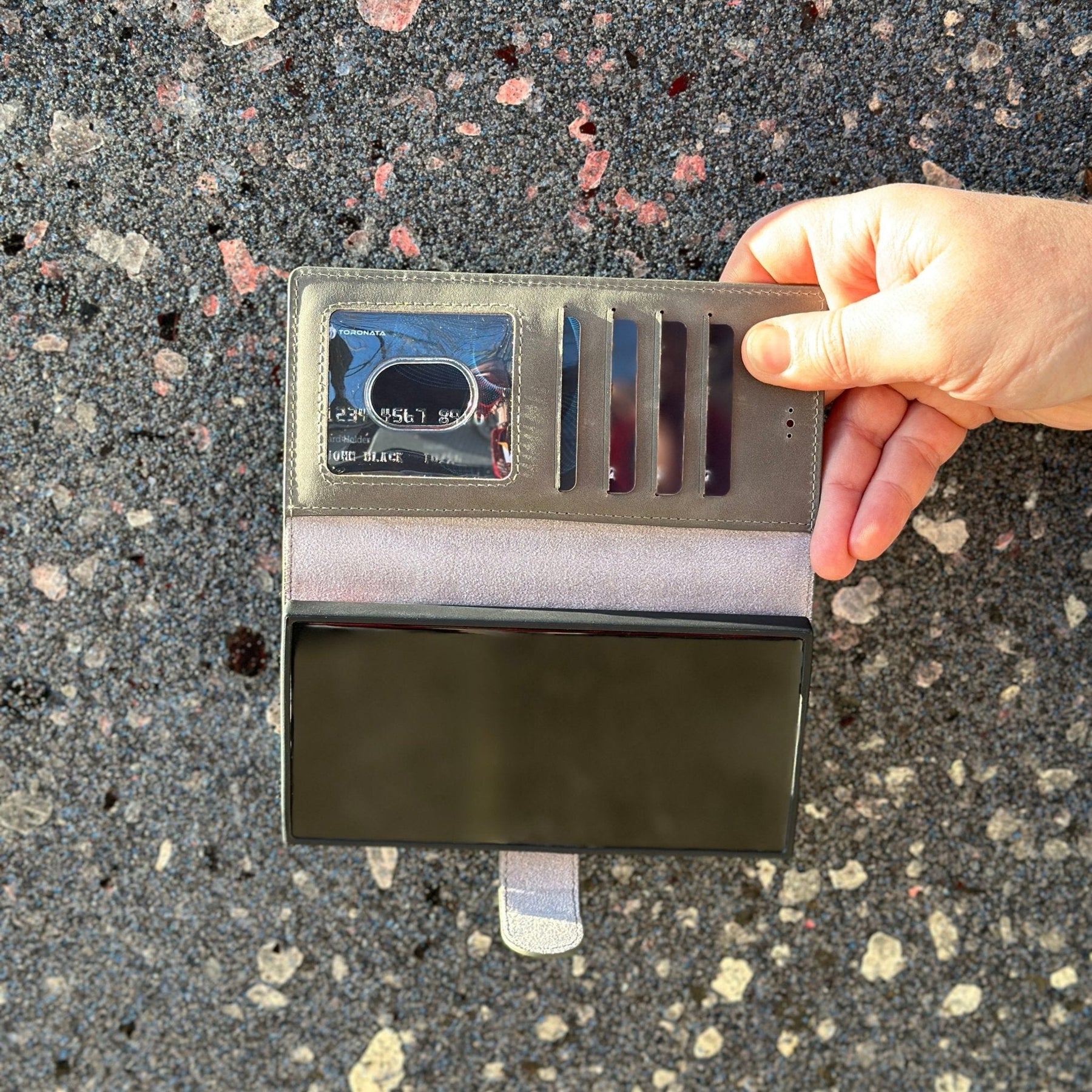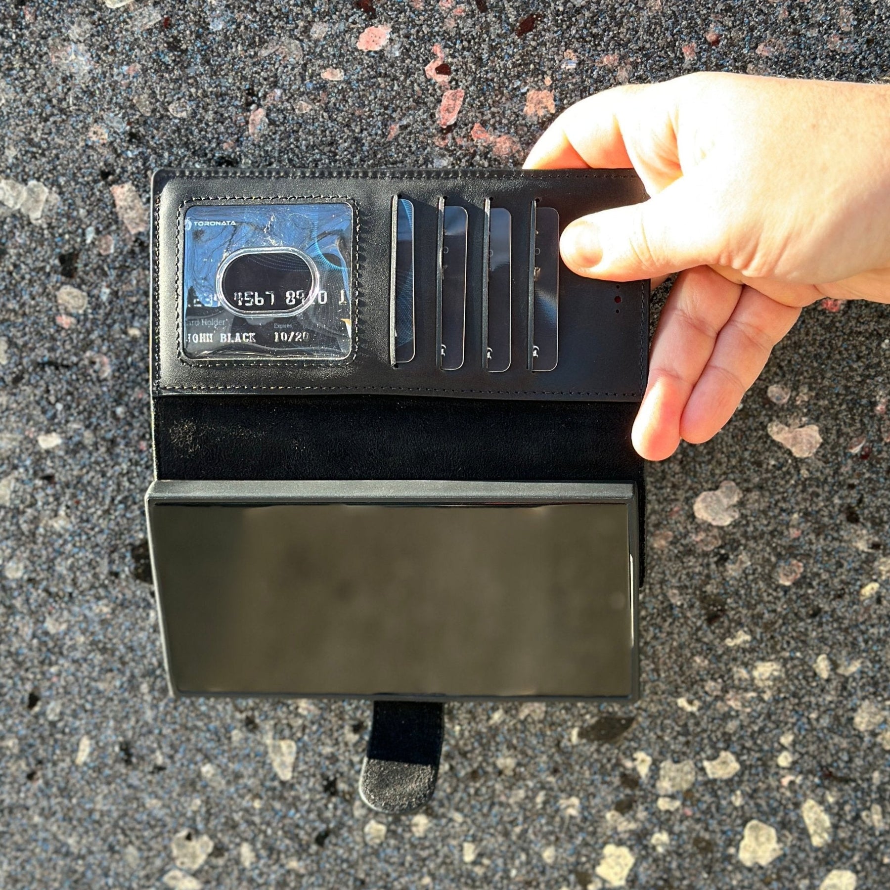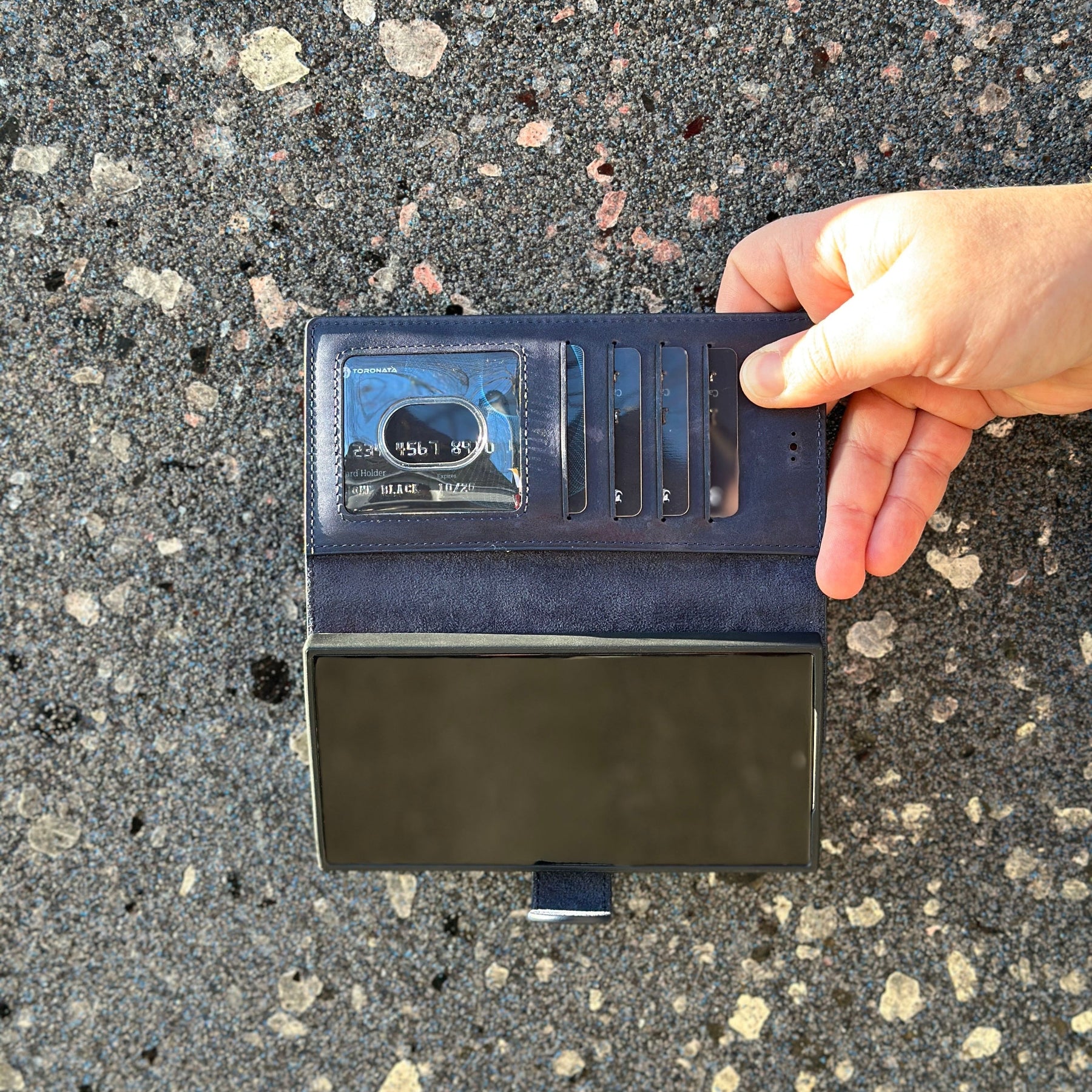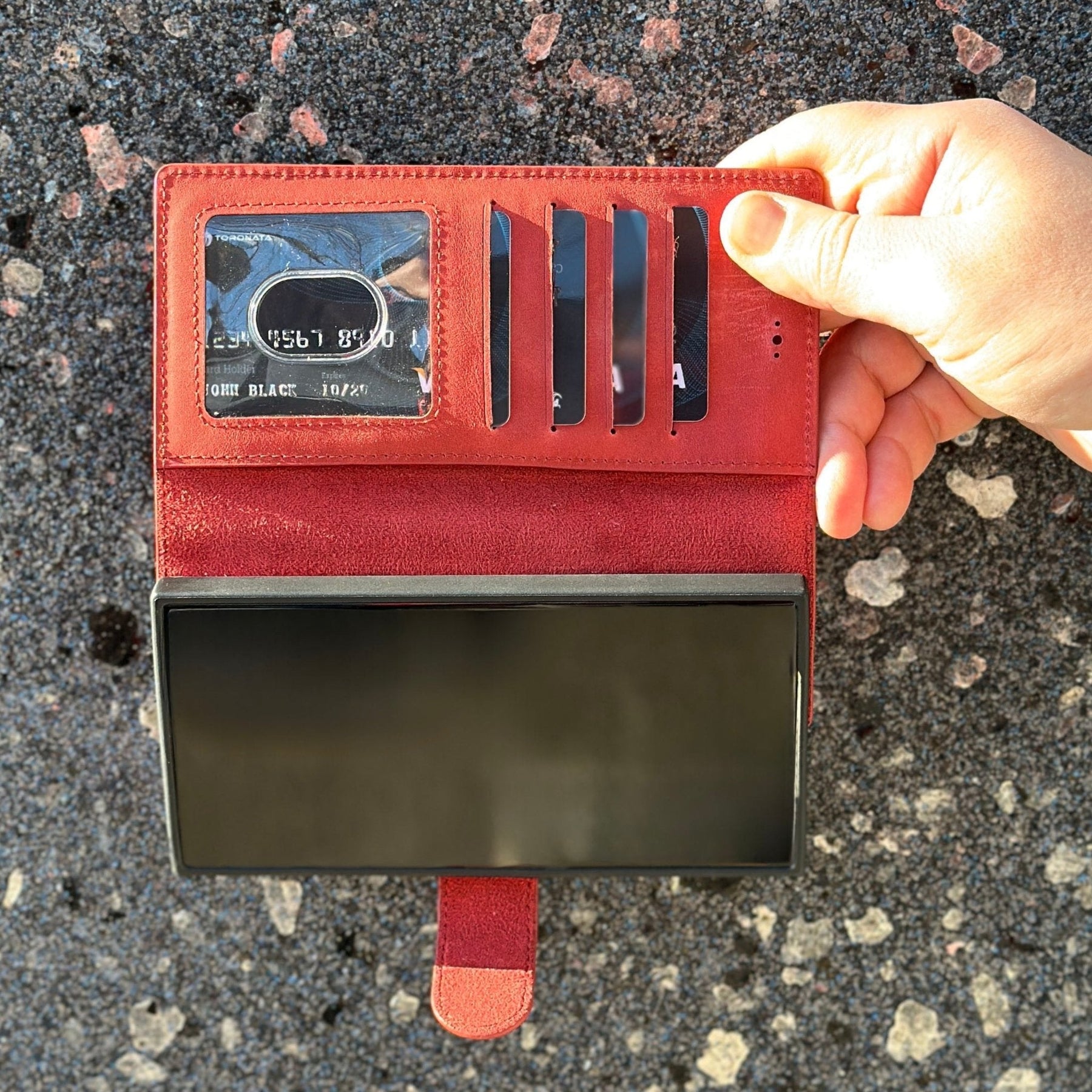 TORONATA Nevada Samsung Galaxy S24 Ultra Wallet Case blends durability with elegance for Samsung Galaxy S24 Ultra users who want built-in card storage, RFID protection, and a hands-free viewing experience. Crafted from genuine cowhide leather, this case protects your device without compromising comfort or style.