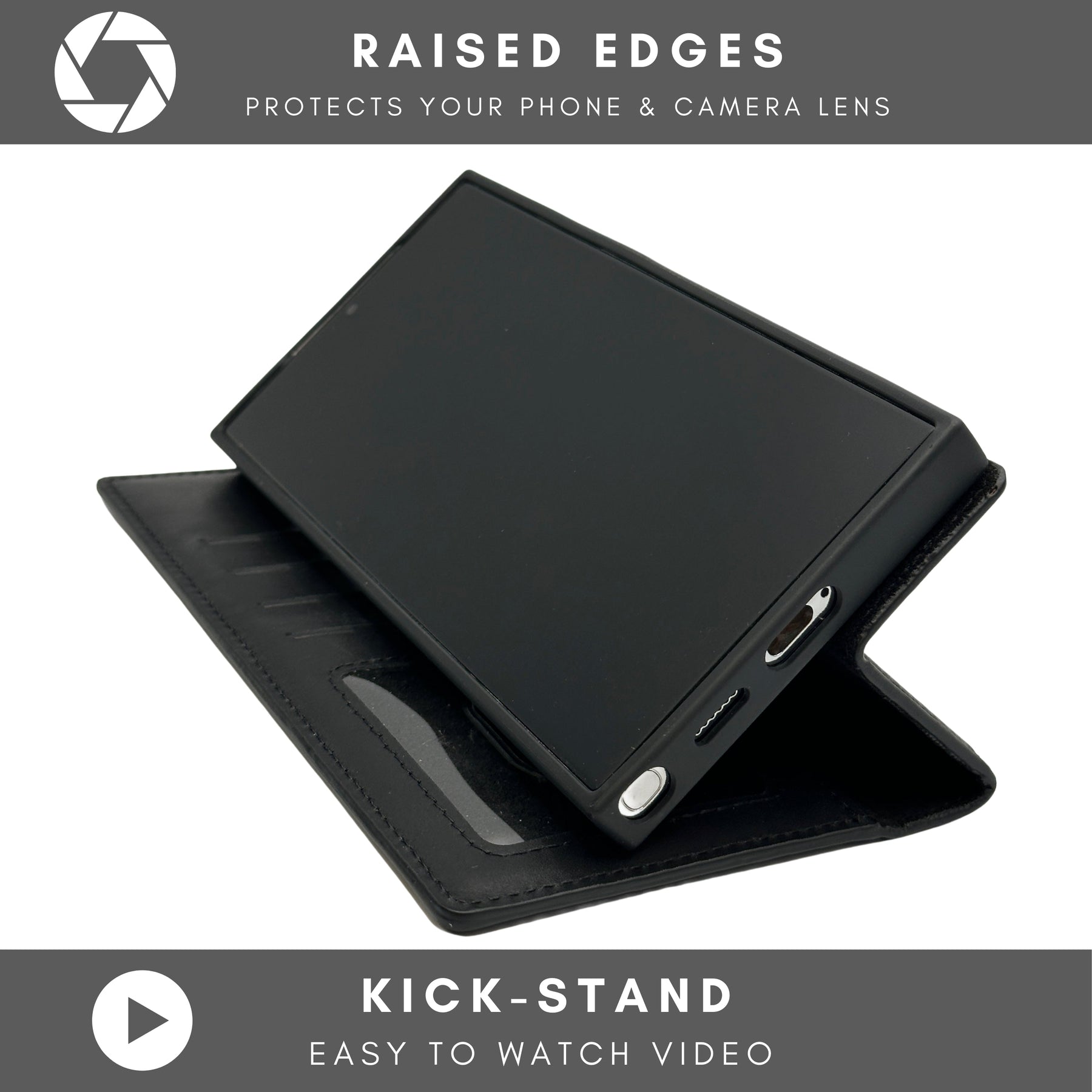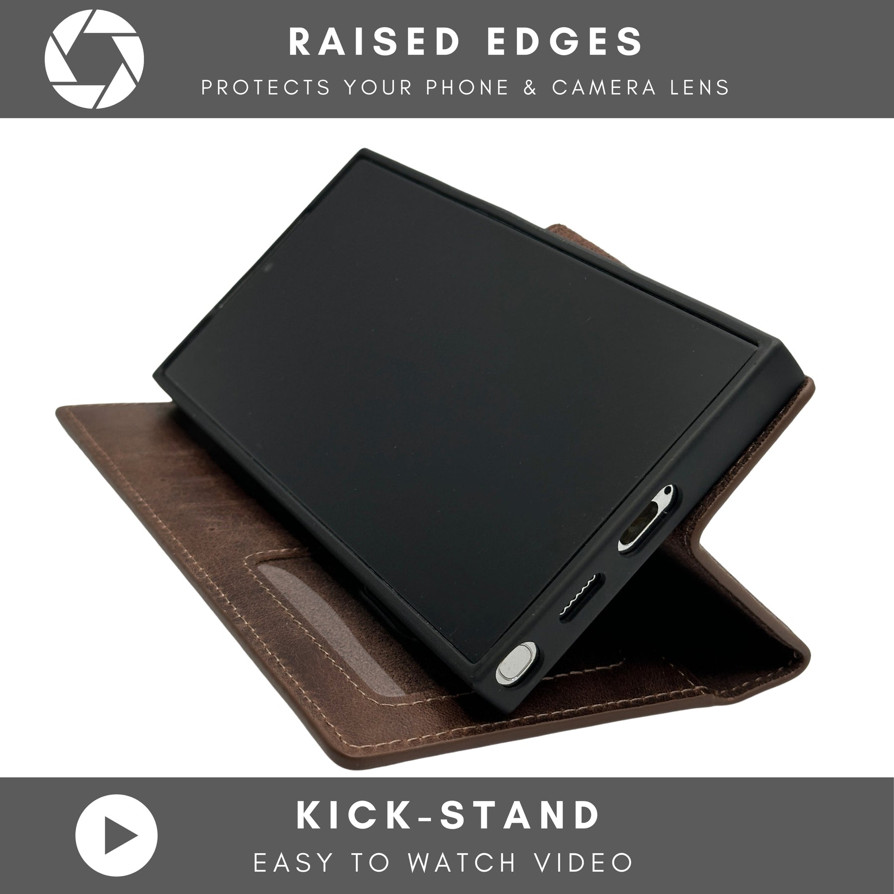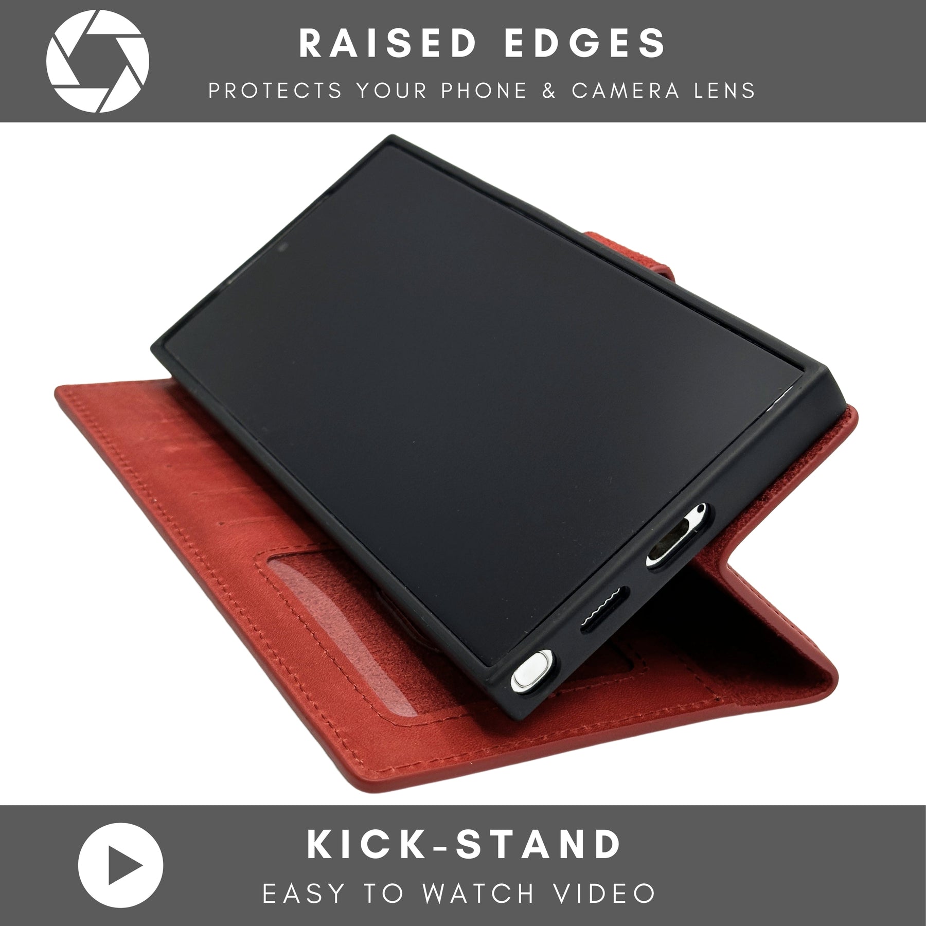 Maximum Functionality This S24 case features a magnetic detachable back cover case inside the wallet, 4 card slots, and a fully convertible, flexible kickstand design that allows for hands-free video calls, movies or clips. The raised edges protect your phone against scratches or dents, while the RFID design prevent unauthorized access to your information!