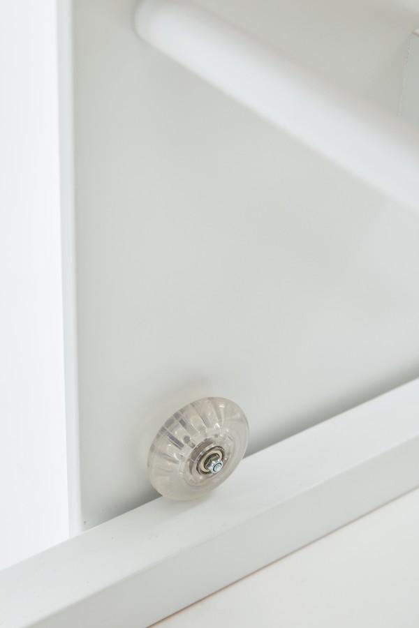 • Clean white structure with chrome accents for a glossy, chic look that fits beautifully into any space.