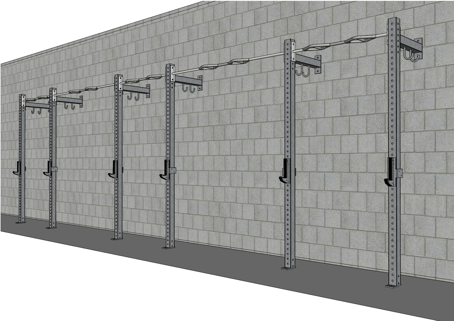 TGrip Commercial 24' Low Profile Wall Mount Rig - 3x3 Steel - Functional Multi-Grip Pull-Up - Sandwich Style J-Hooks