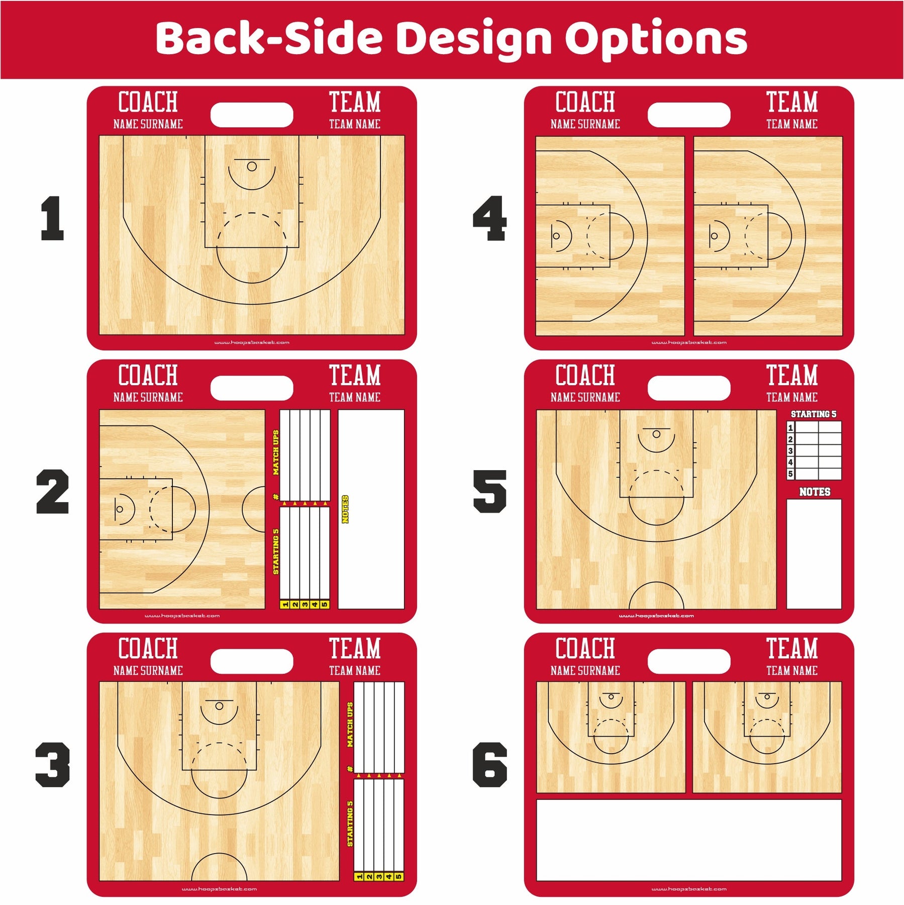 • Fully customizable on both sides: Please keep in mind that all coaching boards are customizable, both the front and the back sides of the basketball clipboard.