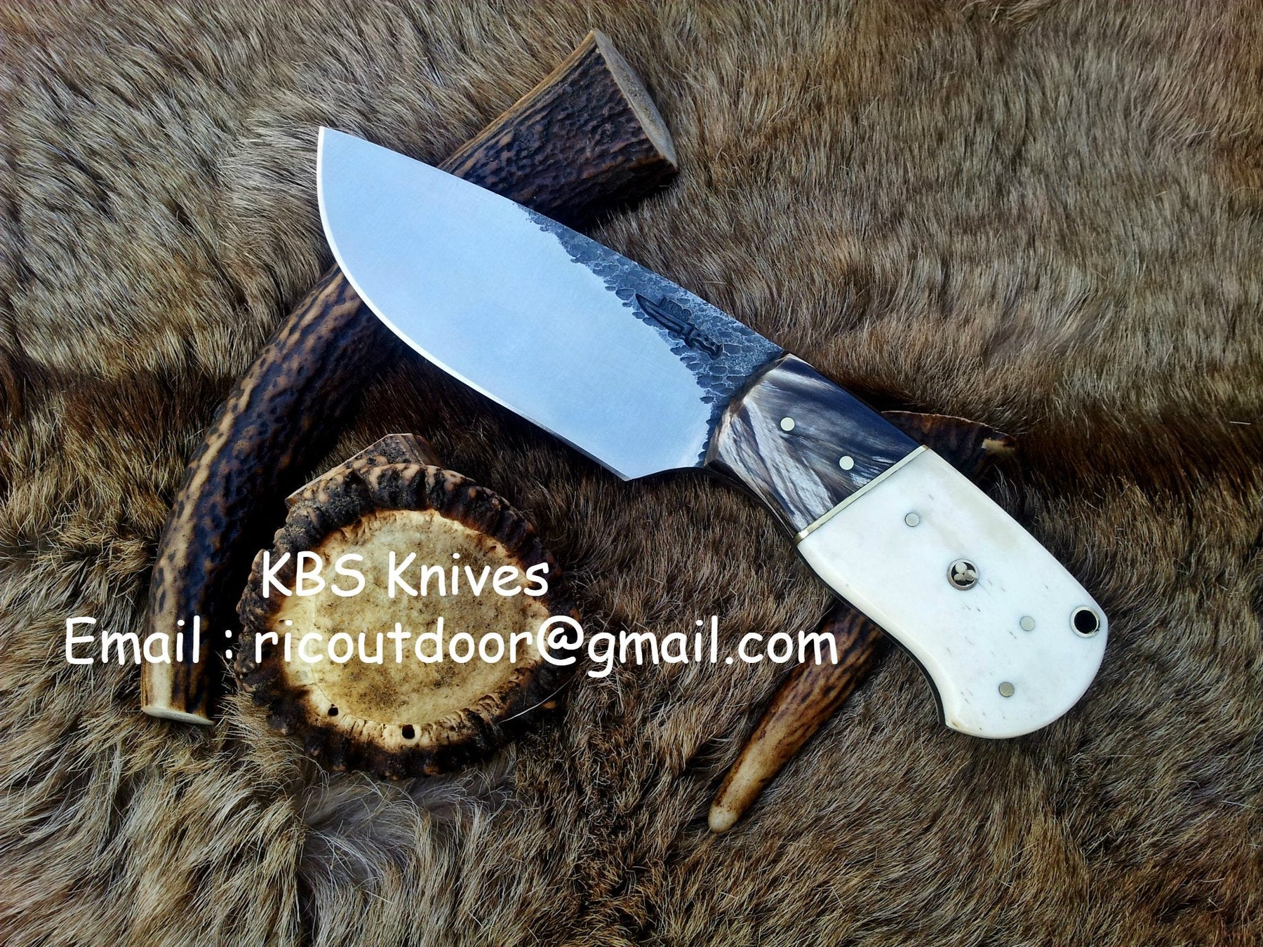 Custom Handcrafted 1095 Forged Steel Skinning Knife with Buffalo Horn and Camel Bone Handle - 8 Inch Hunting Knife