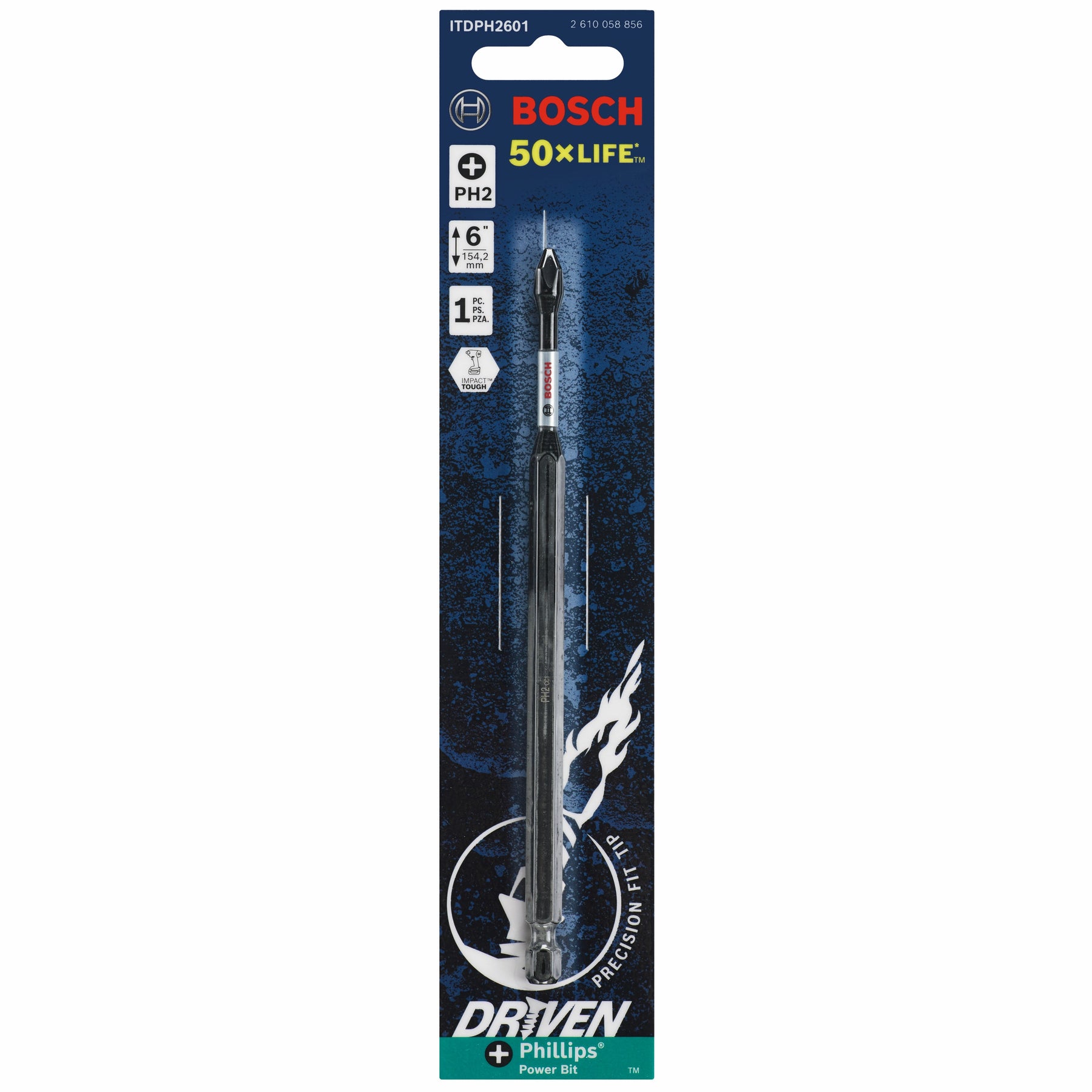 The BOSCH ITDPH2601 Driven 6 In. Impact Phillips® #2 Power Bit is built for pros and serious DIYers who demand long life, a precise fit, and confidence when the torque is real. If your driver can handle the punch, this bit can handle the rest—with 50X the life of a standard bit and a design that loves high-torque impacts.