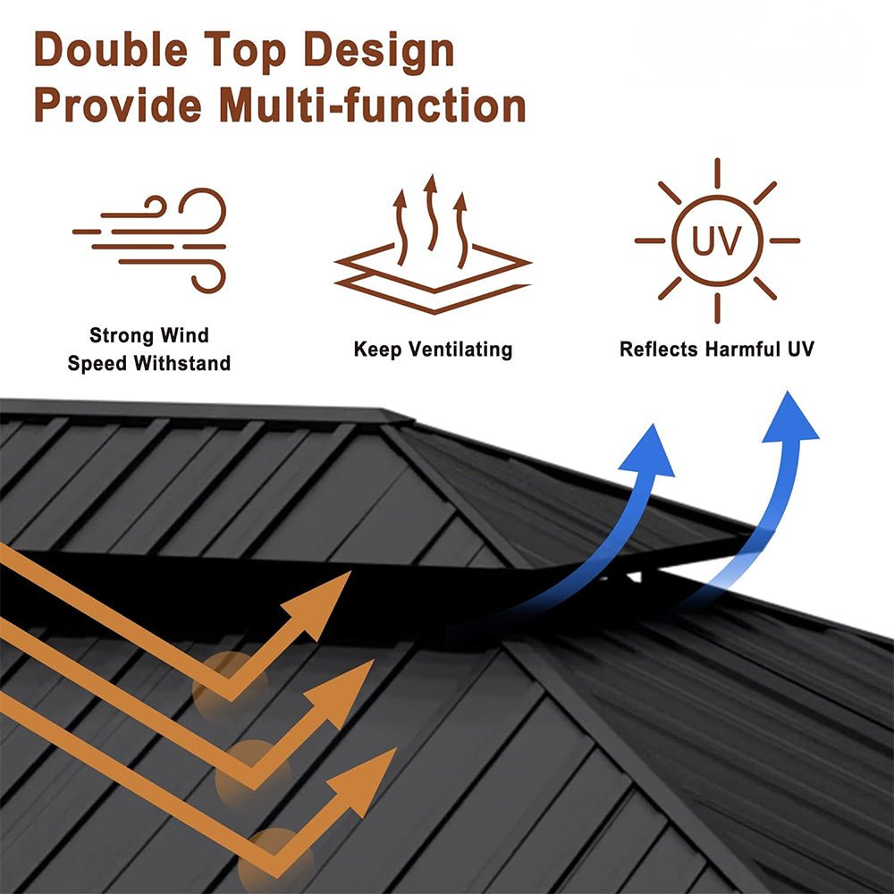 • The MDW Gazebo’s double-roofed, ventilated design is not just a feature; it's a testament to thoughtful engineering. This design maximizes comfort, allowing air circulation that makes hot summer days bearable under its shade.