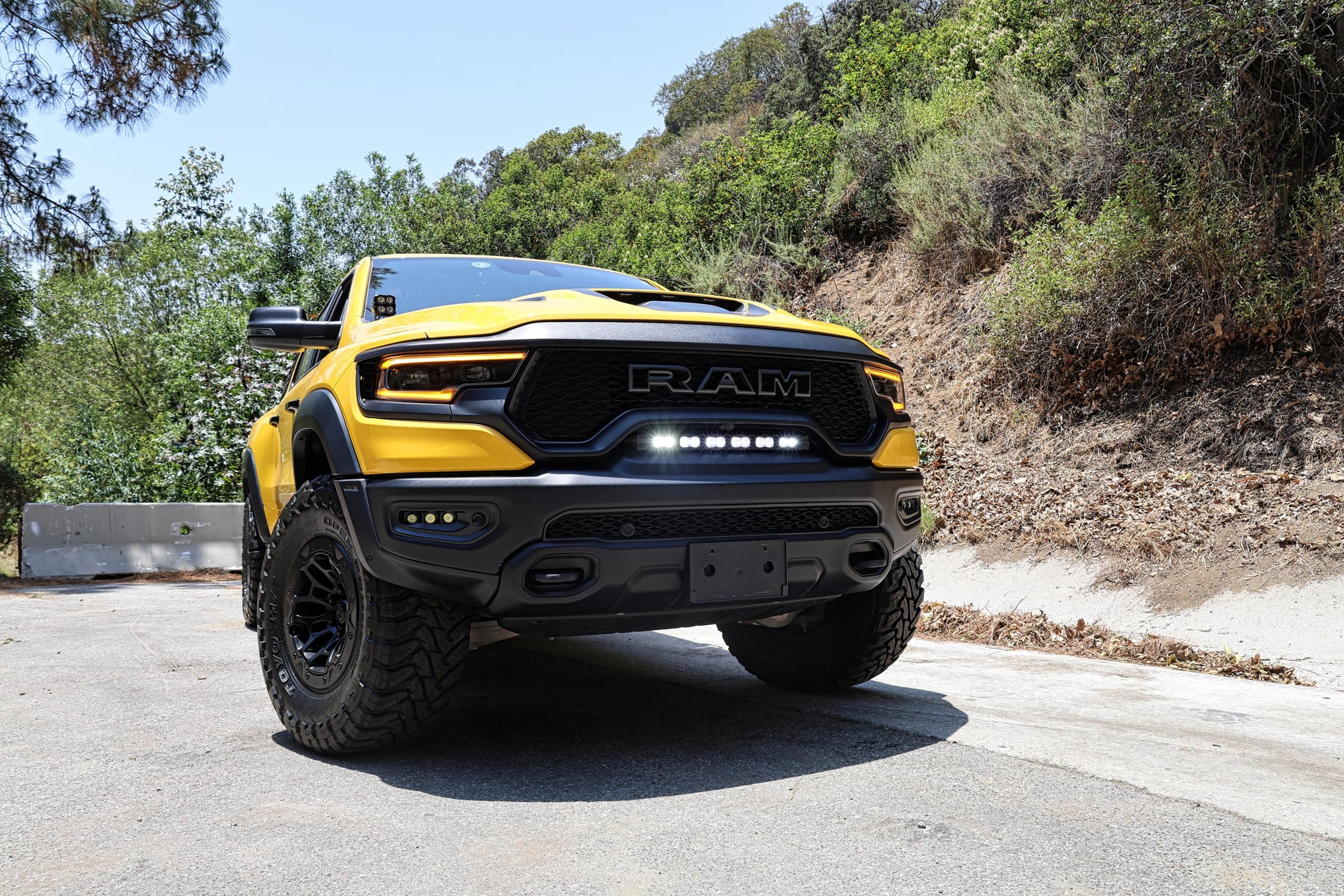 • Fits 2021 2022 2023 2024 RAM 1500 TRX — Curved LED light bar PRO Fits in the factory opening between the grille and bumper. Slim and sleek, built in look.