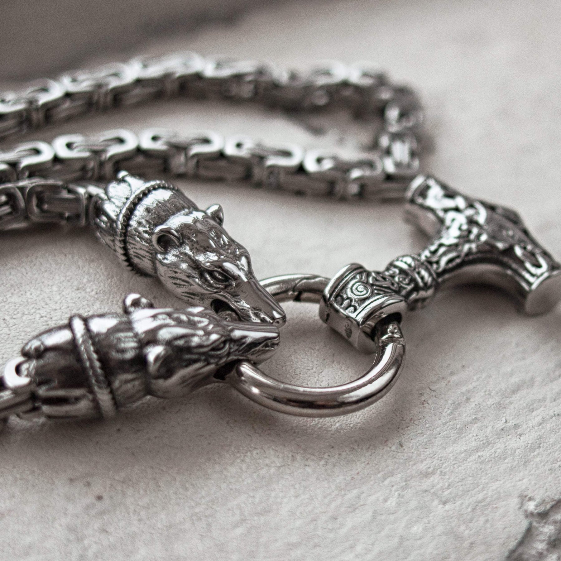 Vikings Geri & Freki Mjolnir King’s Chain Stainless Steel Necklace