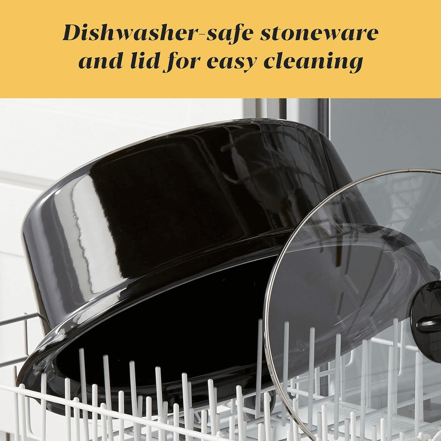 • Durable, Easy-Clean Design: Dishwasher-safe stoneware and glass lid in a sleek stainless steel finish for quick cleanup.