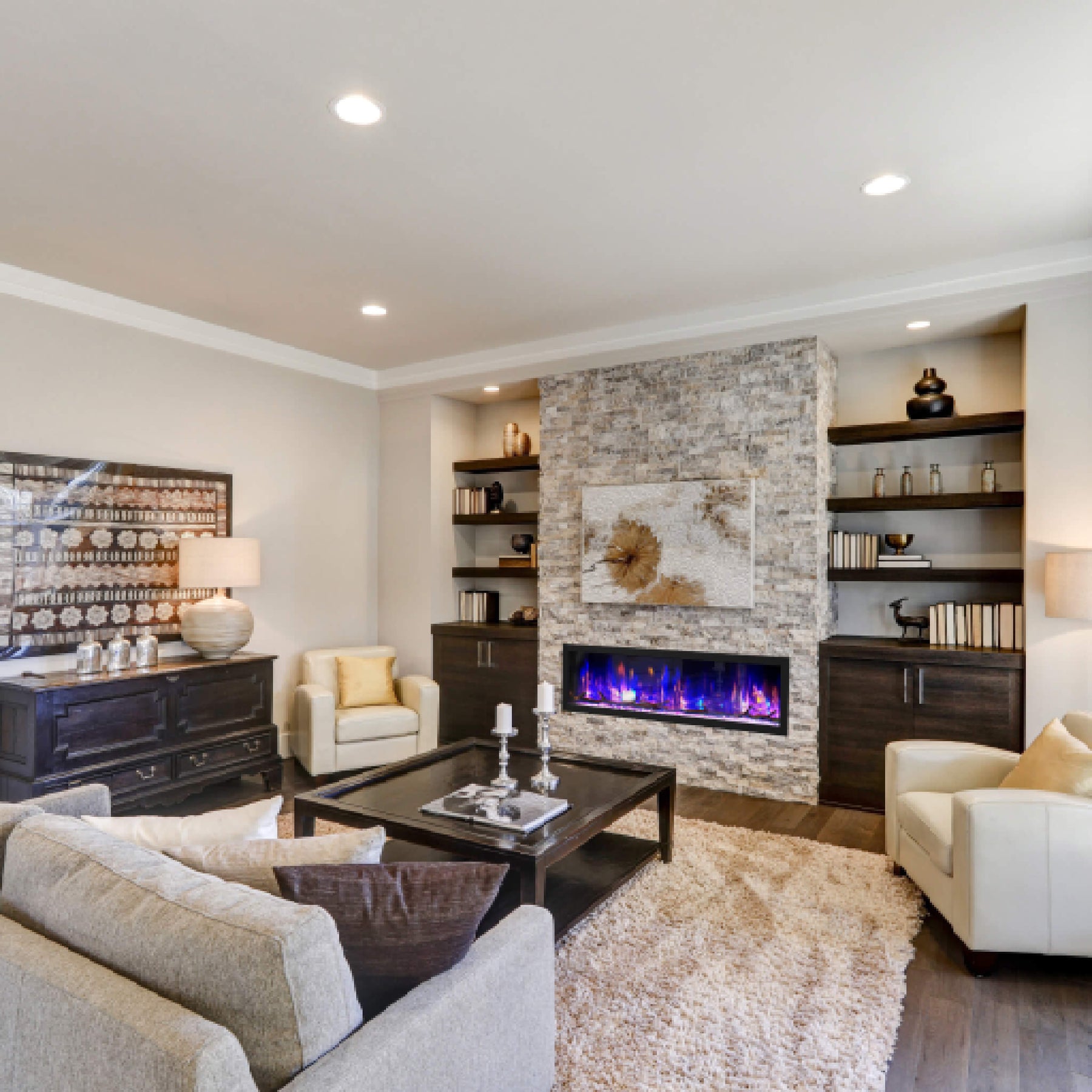 • Adjustable flame and flame bed colors with options like red, blue, and yellow to match mood and decor.