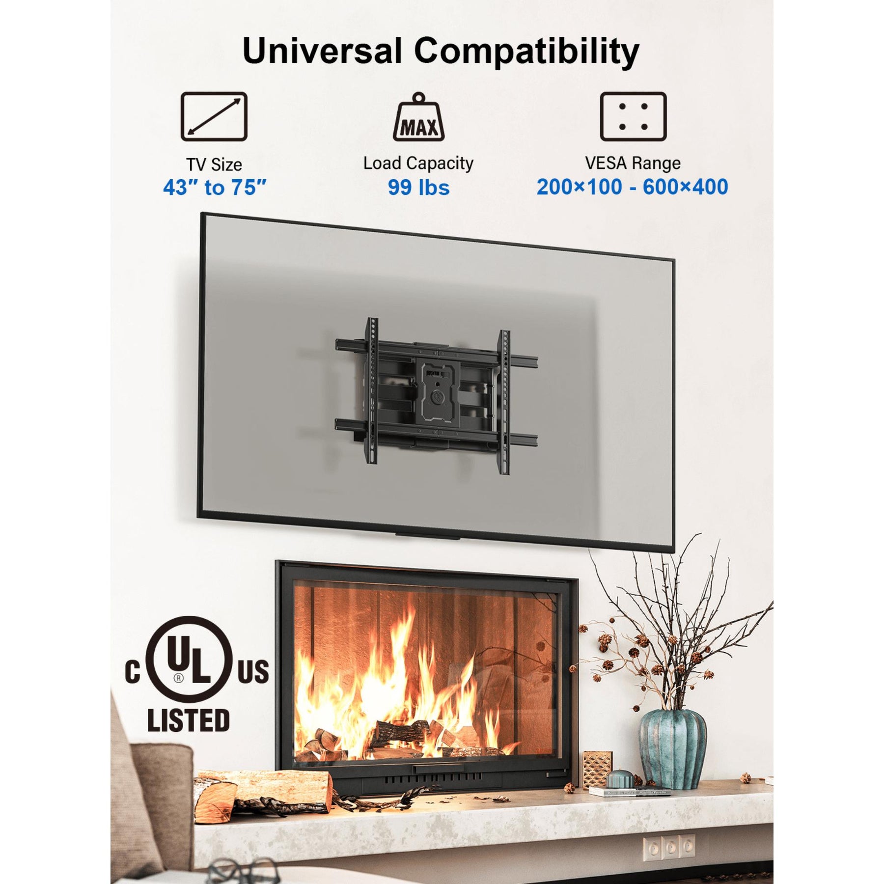 • Universal Compatibility: Fits most TVs 43" to 75" with VESA pattern from 200 x 100mm to 600 x 400mm weighing up to 99 lbs.