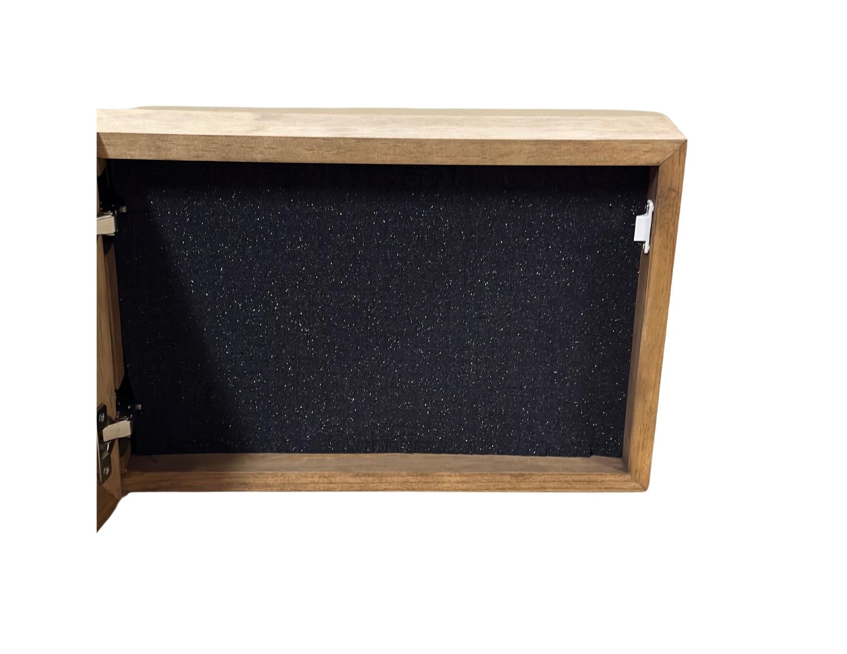 Designed for secure, discreet storage, this wall-mounted gun cabinet blends rugged practicality with tasteful décor. It keeps your self-defense essentials within reach while preserving a clean, stylish look in any room. Whether you’re outfitting a foyer, living space, or home office, it’s a reliable, bold choice for safe gun storage.