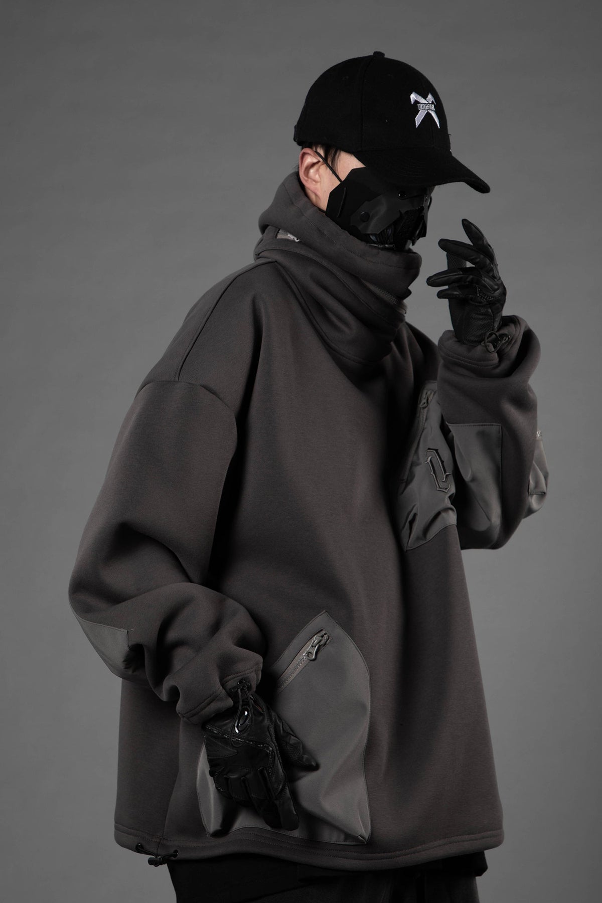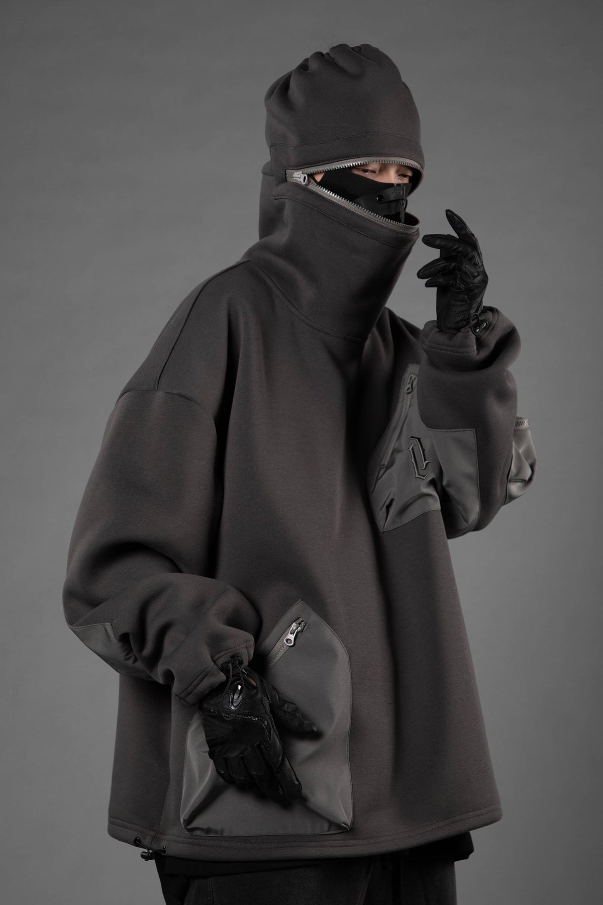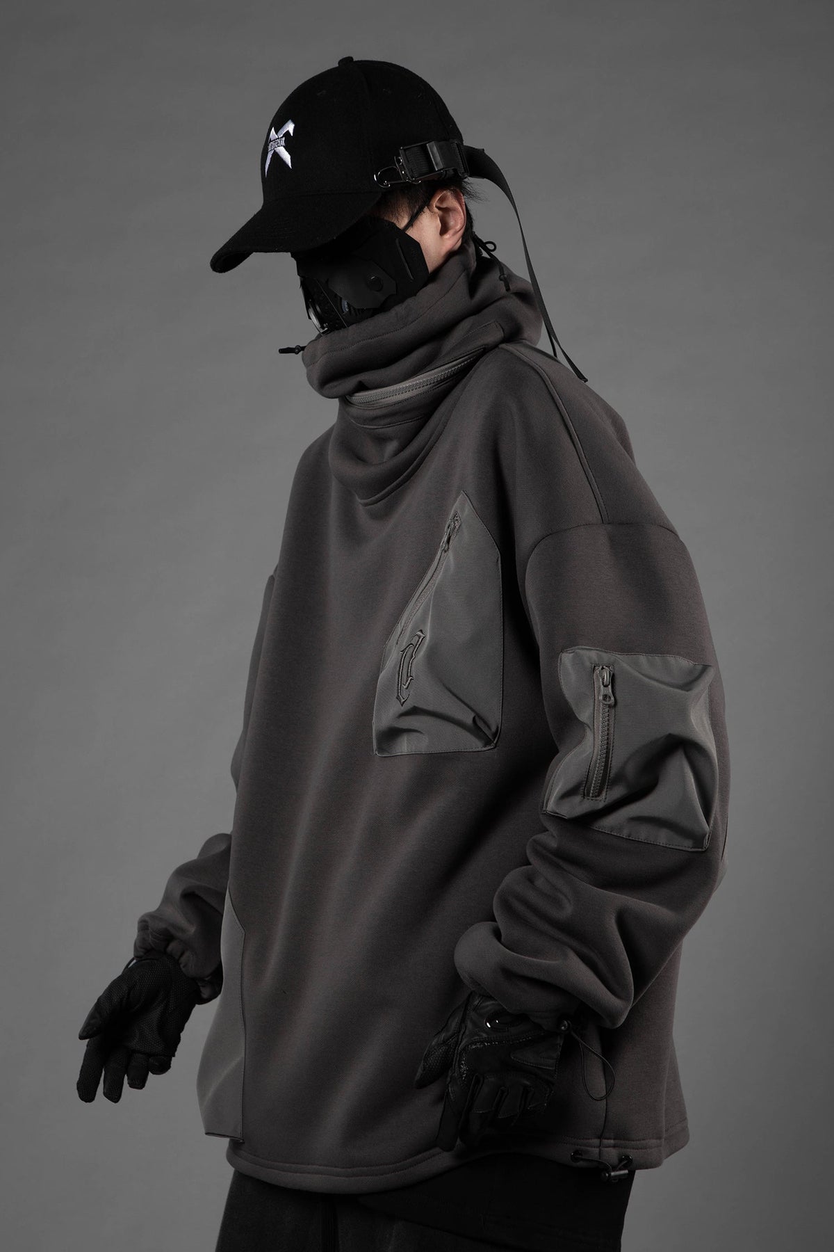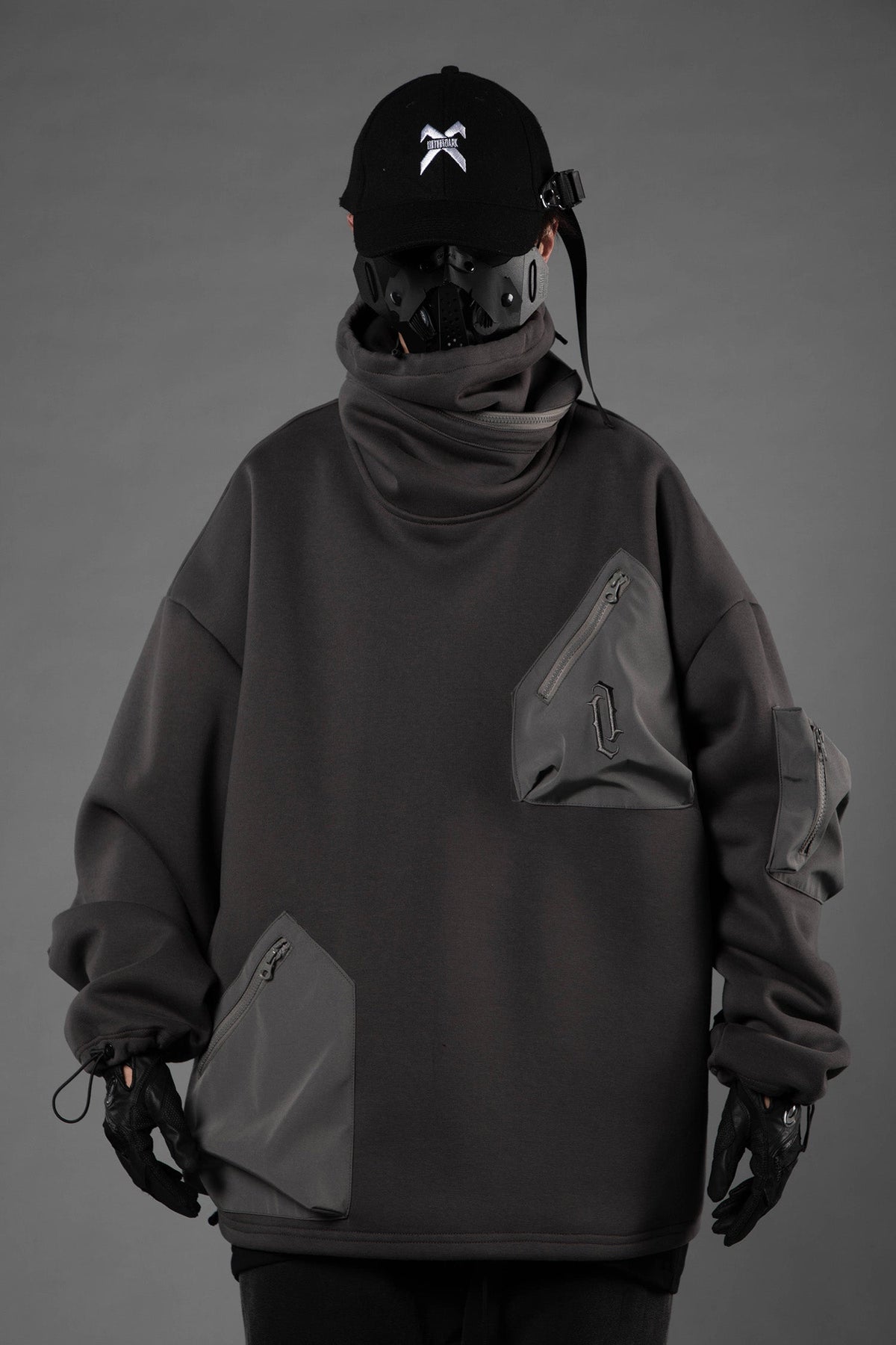 • Multi zipper pockets on the front and arm sleeves for extra storage and techwear look