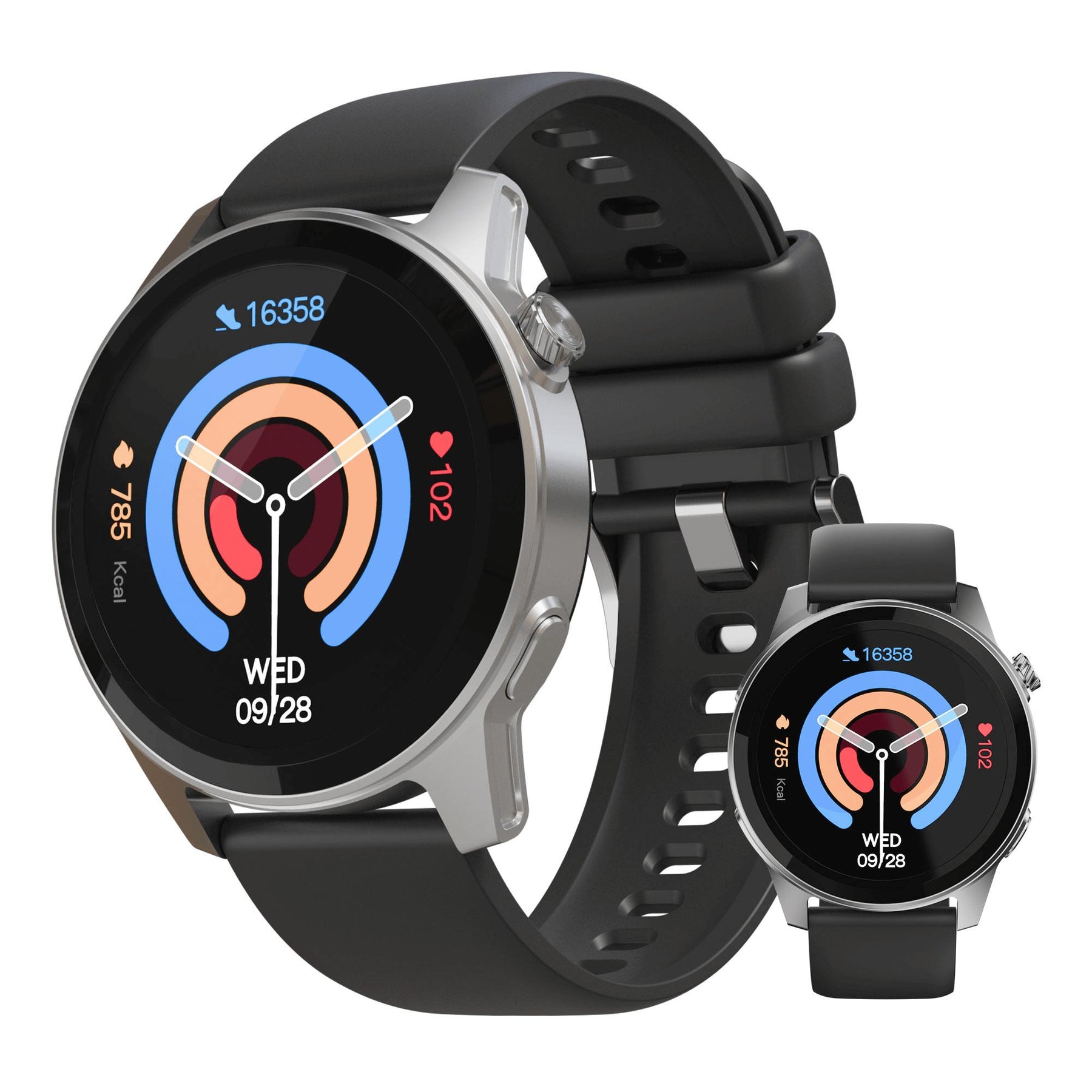 • 24/7 Health Monitoring with heart rate, blood pressure, and blood oxygen (SpO2) tracking to keep tabs on your wellness around the clock.
