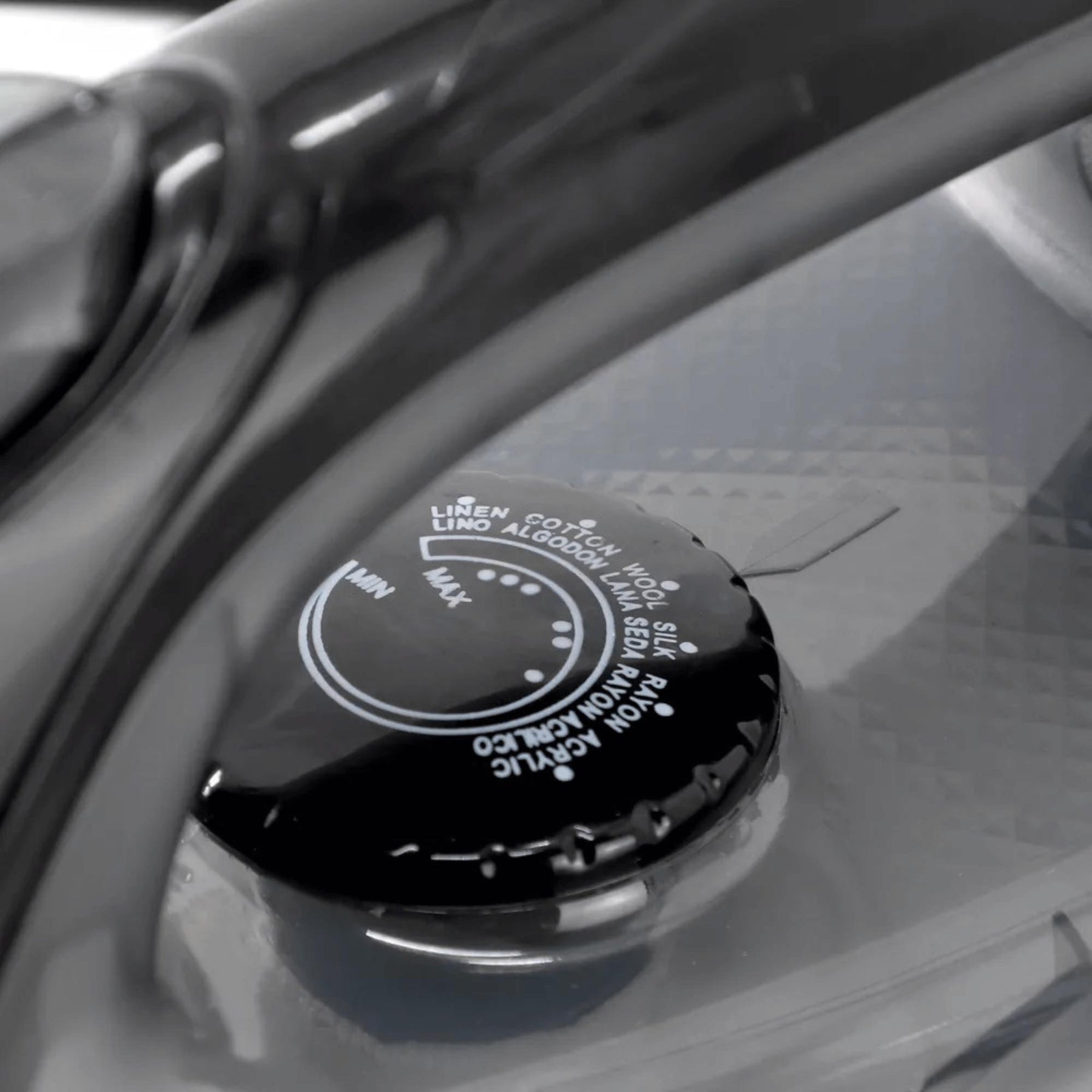 • Adjustable heat dial with six fabric controls for fabrics from silk to denim.