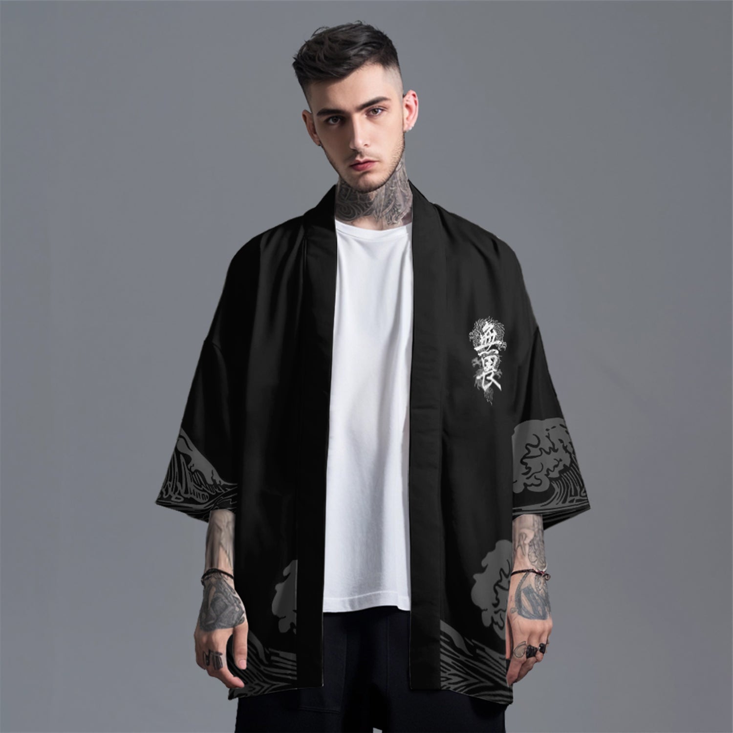 K11 No Fear Kimono is a lightweight, closure-free kimono built for streetwear fans who want bold style with minimal fuss. It’s designed for both men and women, and the Japanese kanji translates to "No Fear"—a message you wear with confidence.