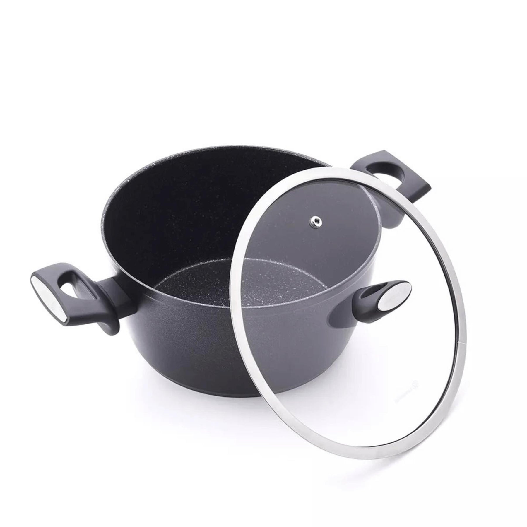 Crafted from environmentally friendly materials, the Nora 3-Liter casserole features a scratch-resistant PTFE coating and a premium granite nonstick surface that delivers effortless food release with minimal mess. The extra-thick base ensures even heat distribution for consistent cooking from start to finish. A cast lid enhances heat retention for optimal results, while large side handles make transport around the kitchen a breeze.
