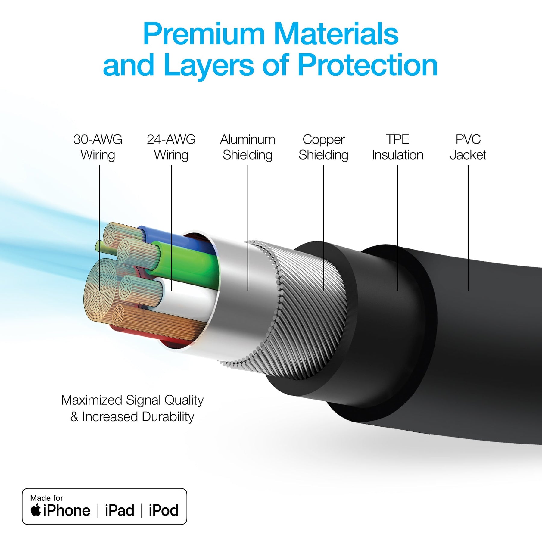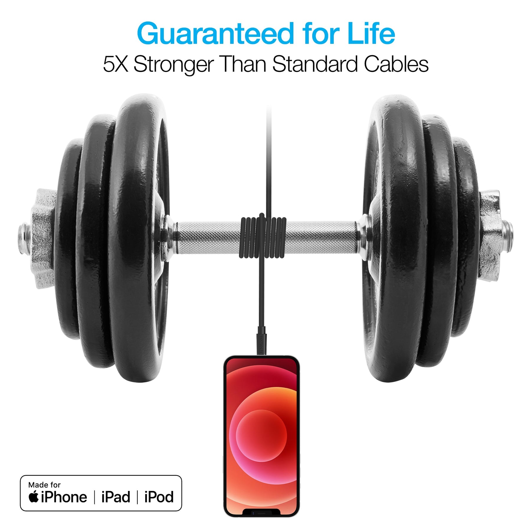 Meet the Naztech Fast Charge USB-C to MFi Lightning Cable 12ft — a long-range charging and syncing lifeline for iPhone users who hate hunting for outlets. It blends Lightning and Power Delivery tech so you can power up from a USB-C PD charger and go from 0 to 50% in just 30 minutes!