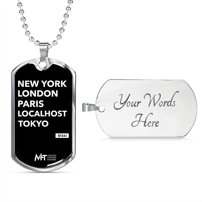 New York London Paris Local Host - Graphical Dog Tag and Ball Chain