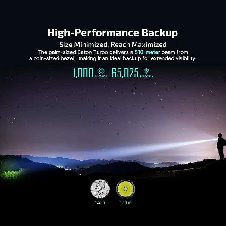 • Powerful beam, precise reach: Max Output 1000 Lumens, Max Throw 510 Meters, 65,025 Candela for long-range visibility.