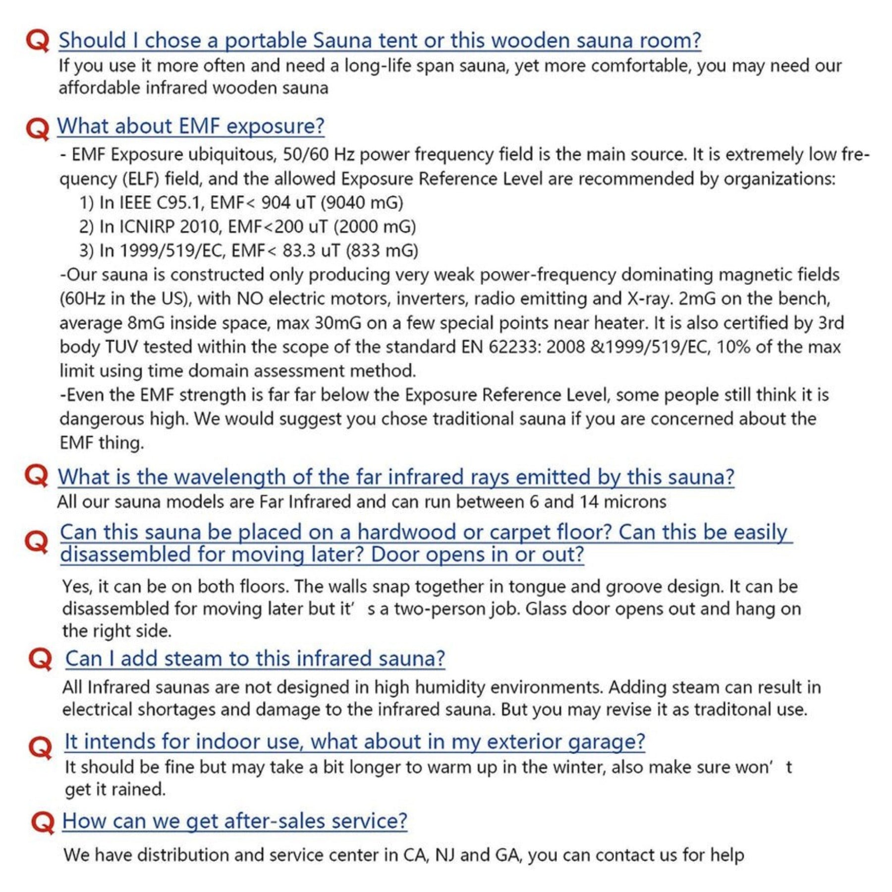 • Shipping & Delivery: FREE USA SHIPPING. YOUR 2-PERSON CORNER SPACE INFRARED WOODEN SAUNA ROOM WITH BLUETOOTH SPEAKERS WILL BE DELIVERED TO YOU BETWEEN 4-5 WEEKS.