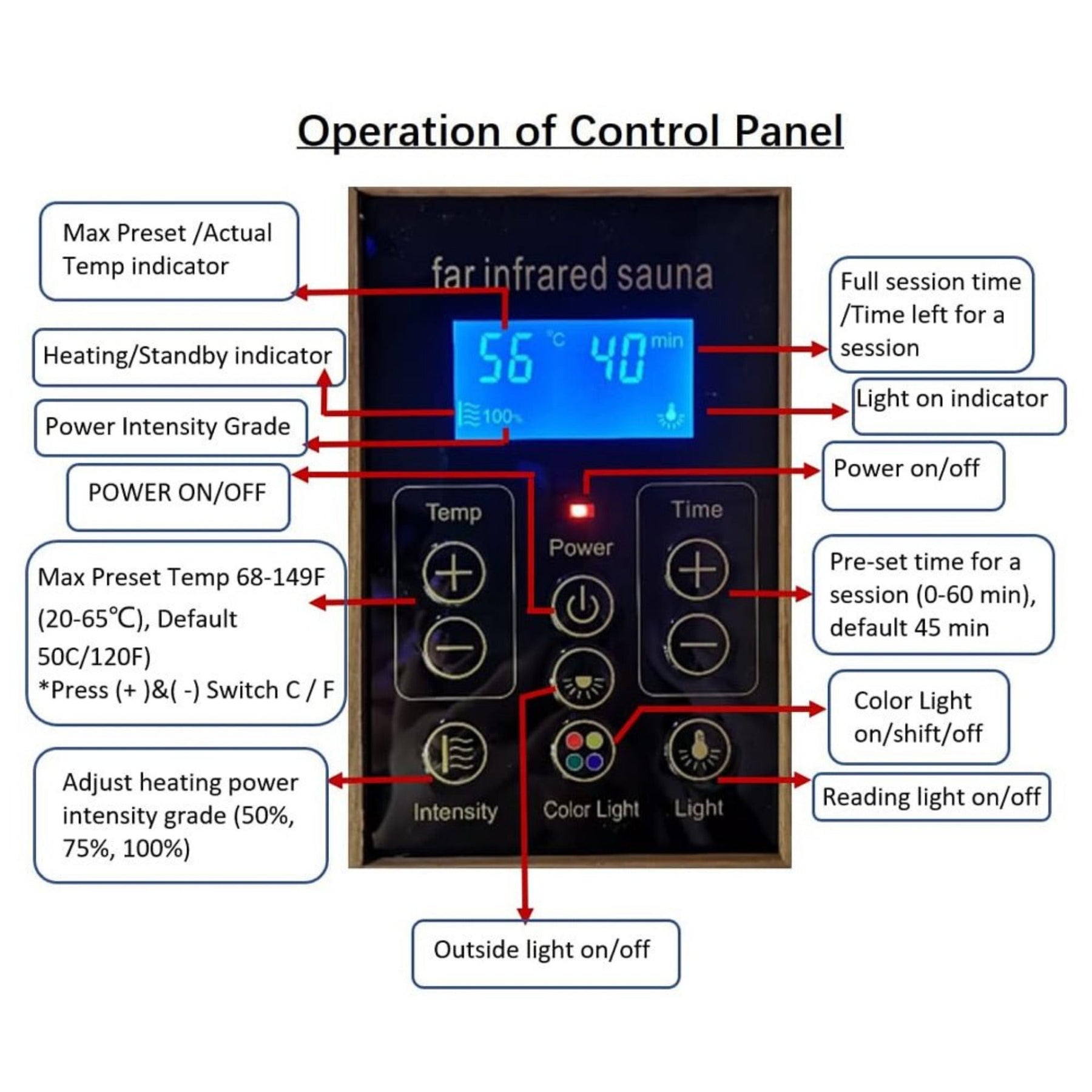 • Control & Settings: LCD panel control, with pre-set temperature and time settings ranging from 68-149°F (20-65°C), with a maximum of 149°F (65°C) that will auto shut-off.