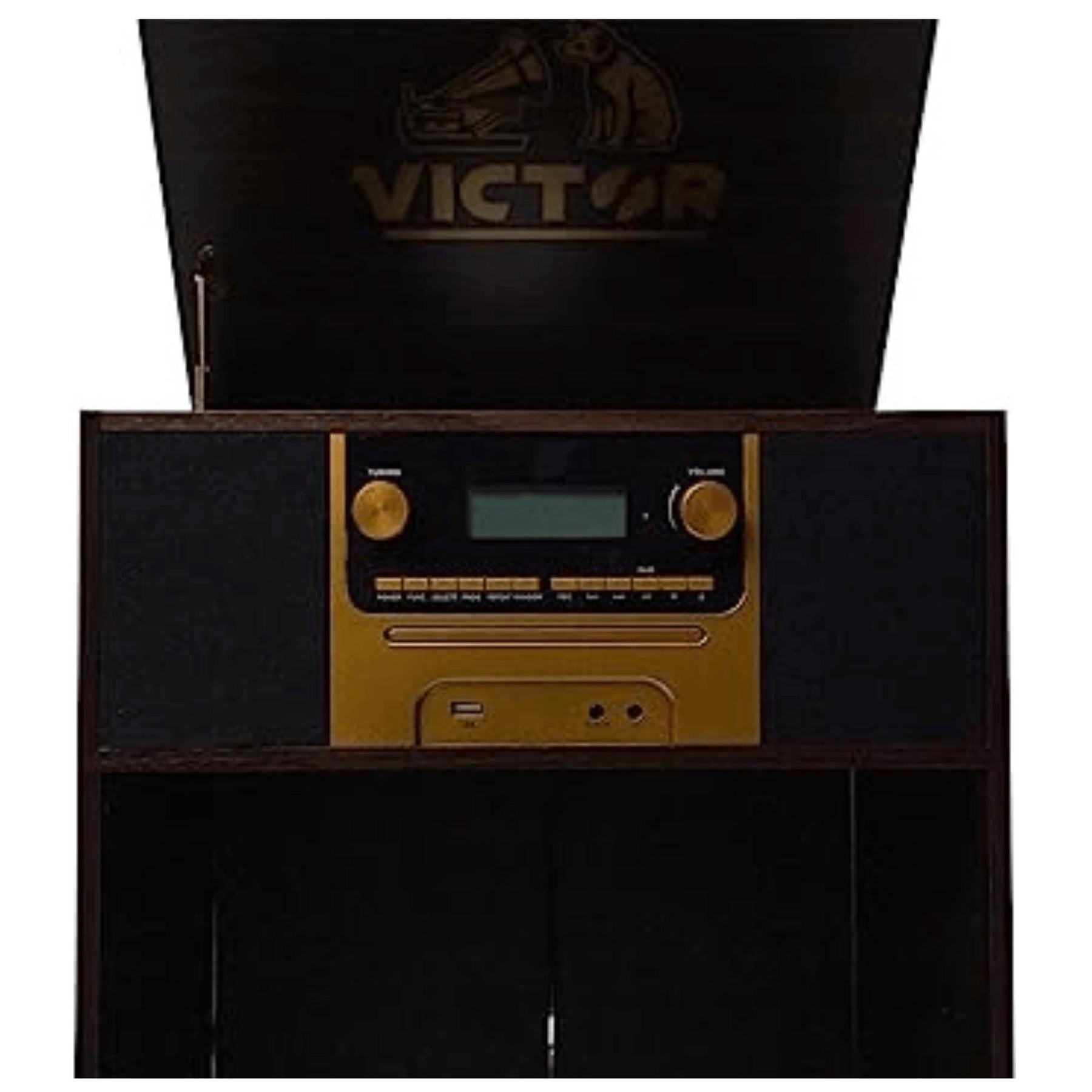 Victor Boyleston 7-in-1 3-Speed Turntable Music Center w Album Storage and USB Port