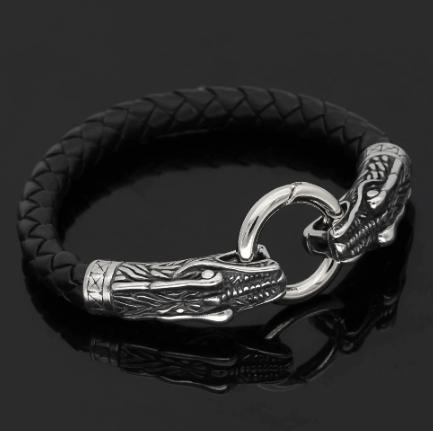 Designed for everyday wear, this bracelet combines a sturdy stainless steel core with a premium leather strap for a comfortable, lasting fit. The steel-and-black finish adds versatility—dress it up for evenings or keep it casual with your favorite tee. And yes, the dragon head isn’t here to scare your wrist—it's here to turn heads and spark conversation rather than dull conversations with your outfit.