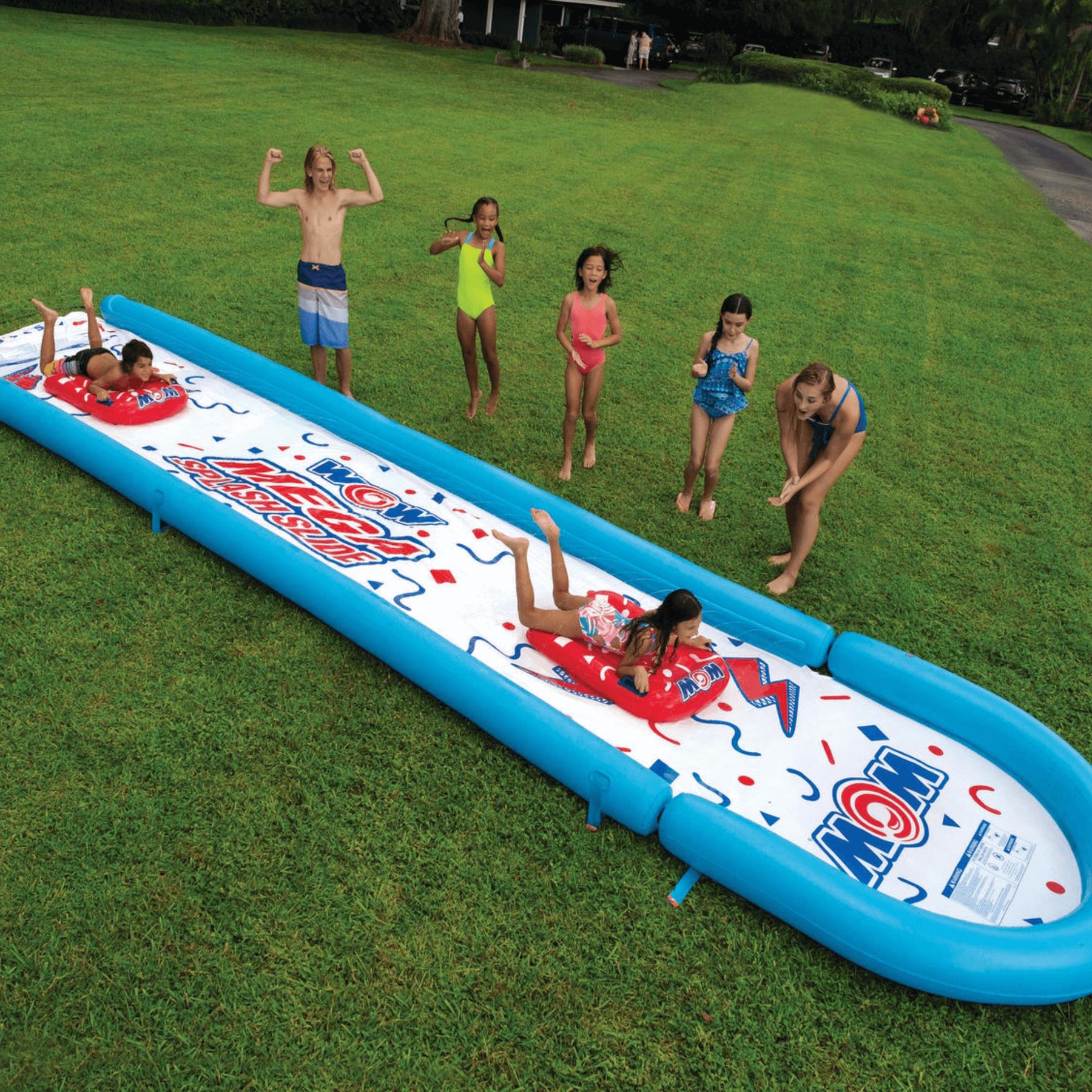 Turn your backyard into a summer splash zone with the WOW Watersports 25 Ft Mega Backyard Slide with Splash Pool and High Side Walls. Perfect for kids’ backyard birthday parties or sunny weekends, this colossal water slide brings endless giggles and splash-filled fun to your lawn.